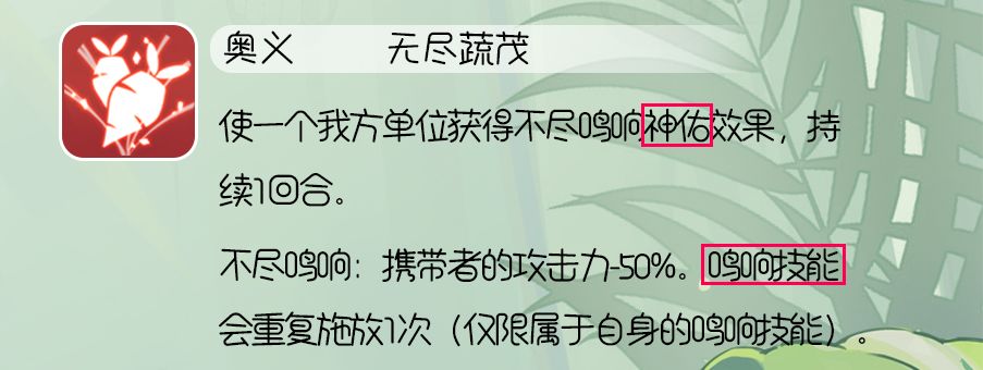 “不尽鸣响”的作用对象是“鸣响技能”,而不同于“回音”的“奥义”。