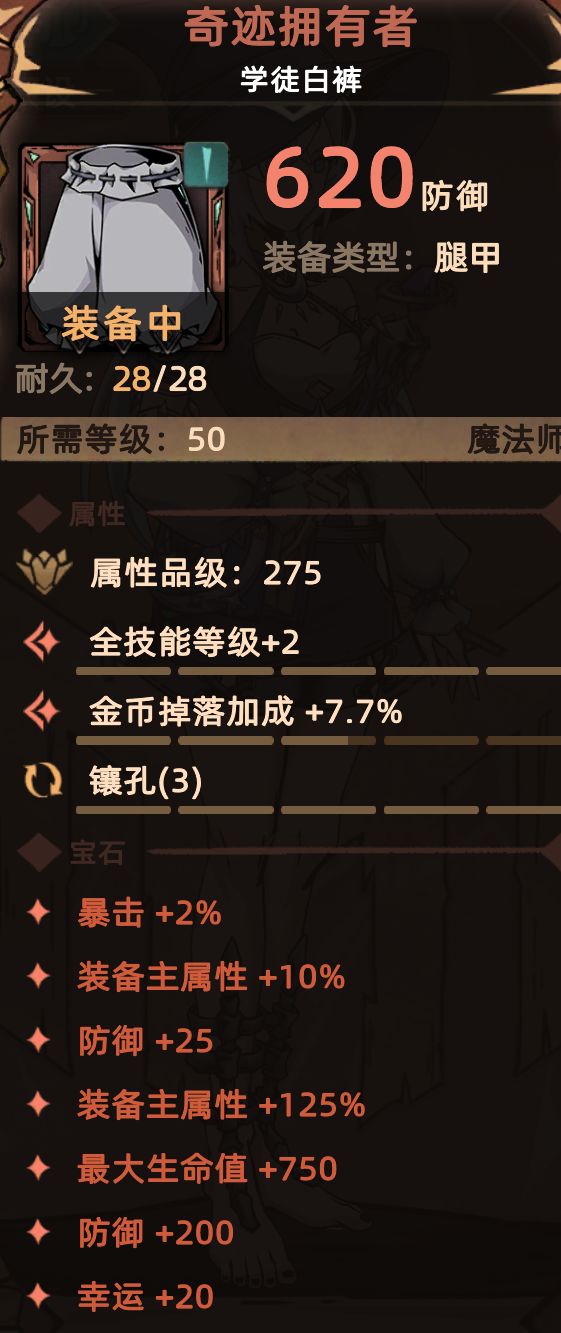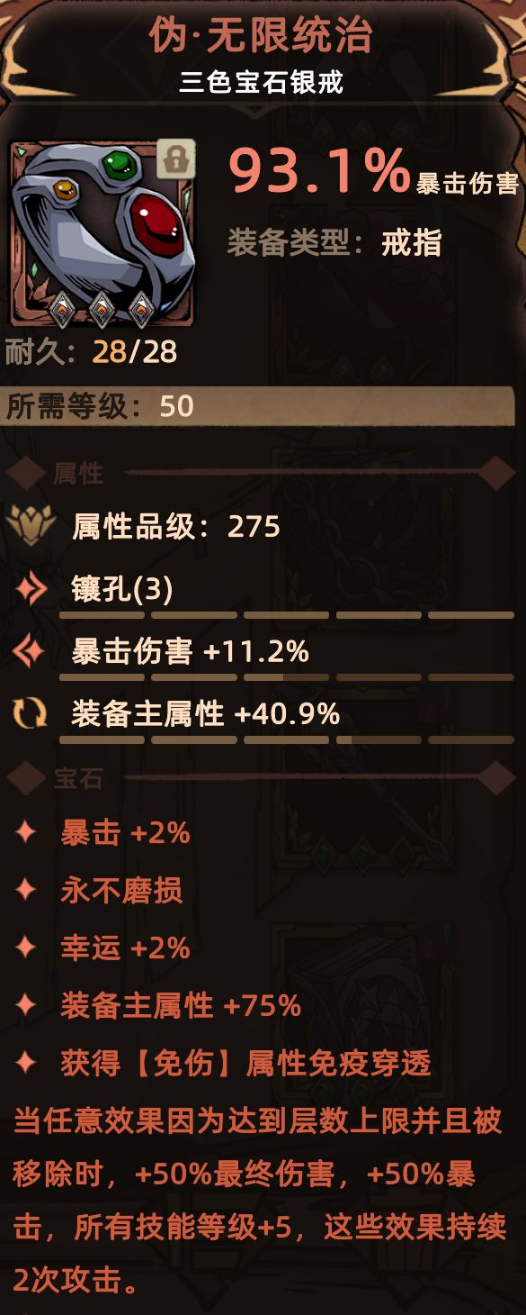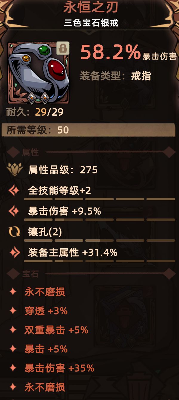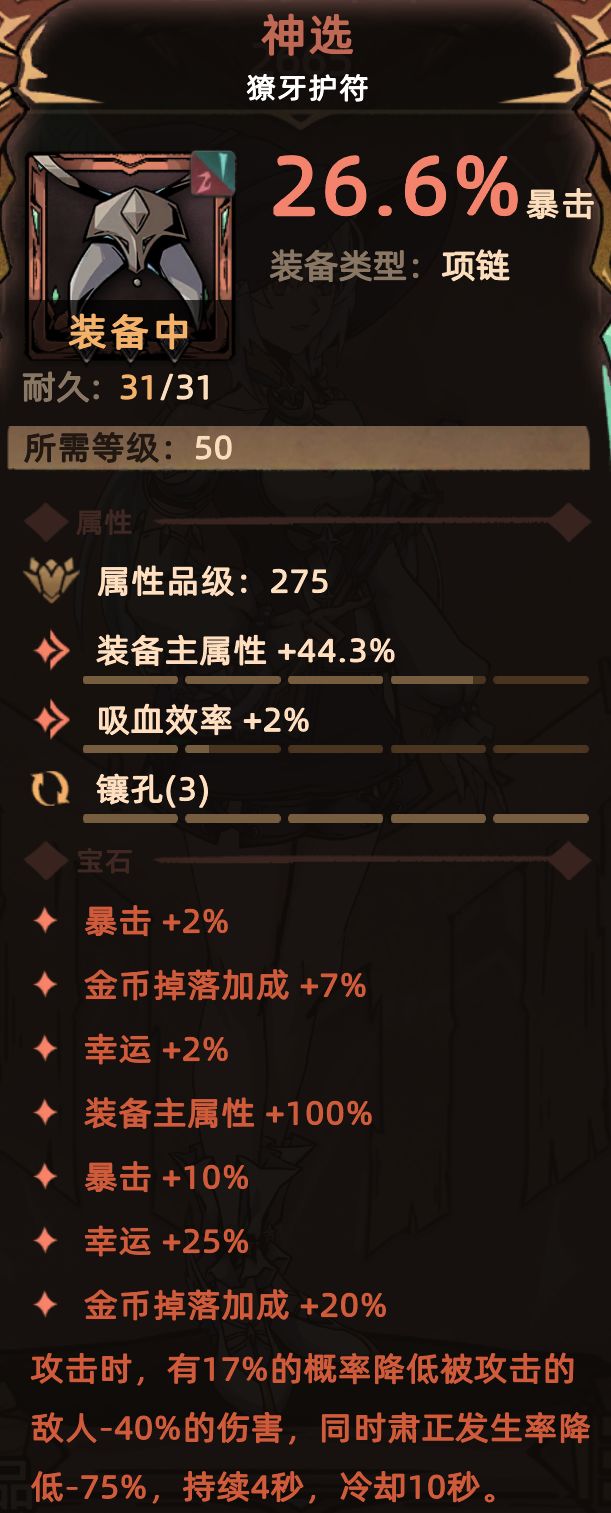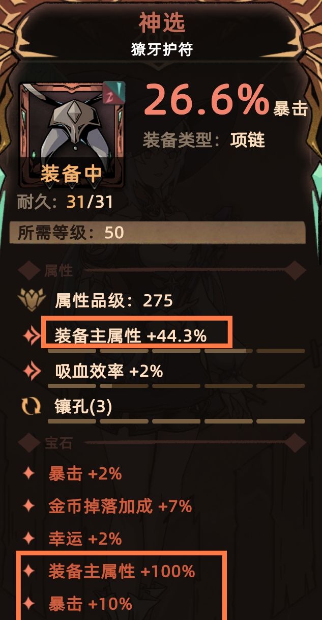 胚子推荐词条:全技能等级>爆伤>生命值>吸血 ----------------(某些装备主属性词条加成更高)