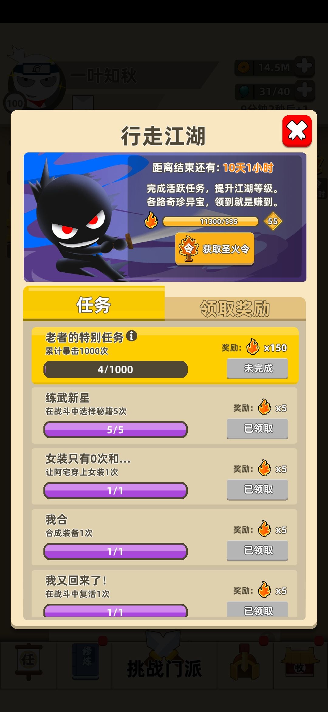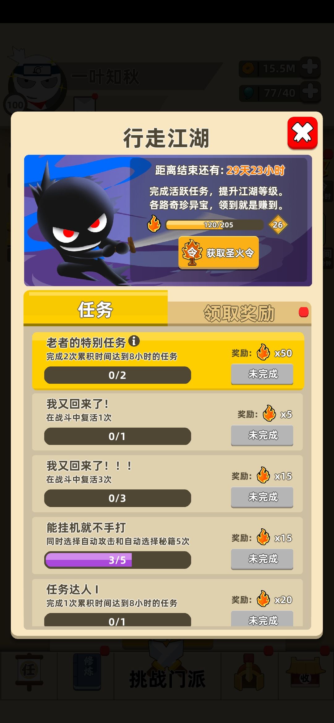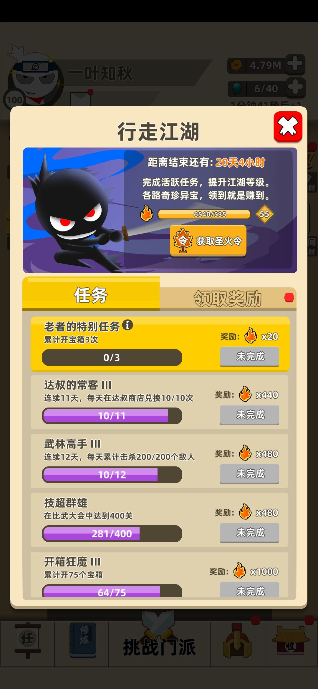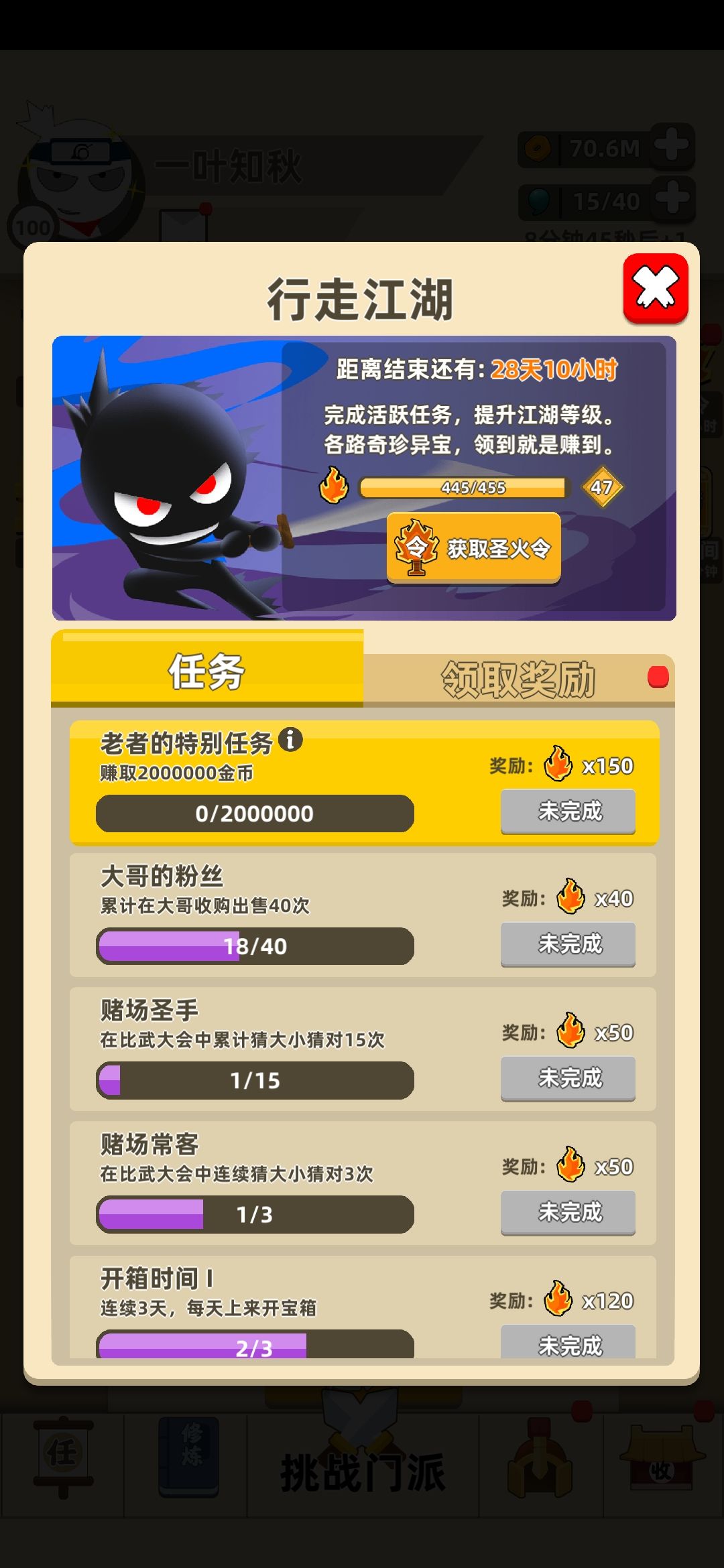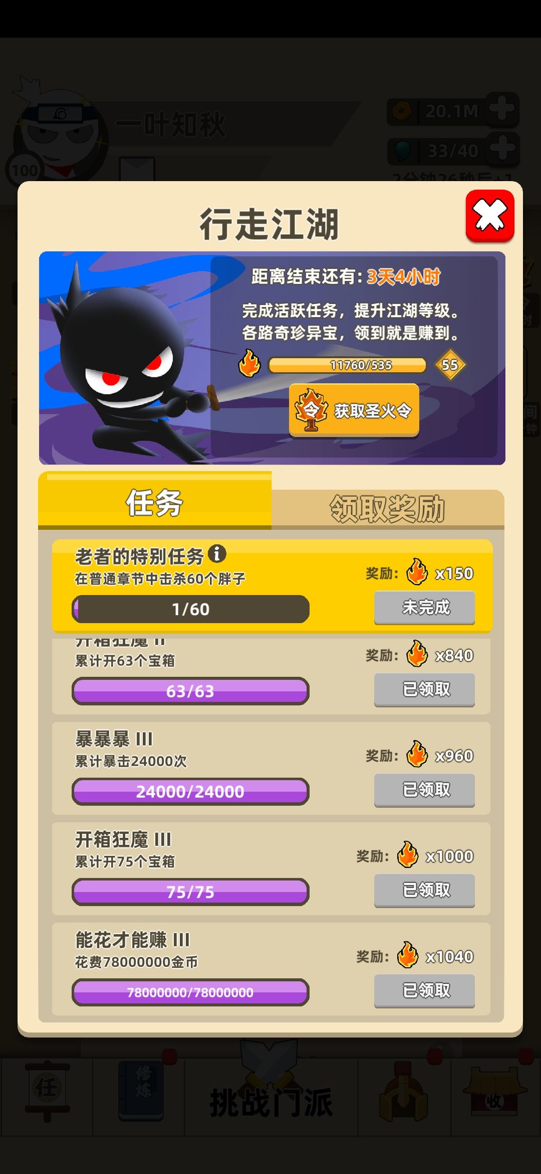 Ⅰ.首先老者的特别任务在圣火令的任务中占了极大的比重,他的每个任务有些很小,只加20,有些任务很大,能加150,老者任务非常重要,因为他可以无限做,你可以跳过后面一些难度较大的任务也可以把圣火令做到75,老者的特别任务中有几个特别恶心的点需要注意一下,第一个就是开箱子任务,要你开三个箱子,一般这个只有免费的三个银箱子才能做,商店也刷不到几个,所以留几个钥匙不开是解决的方法。