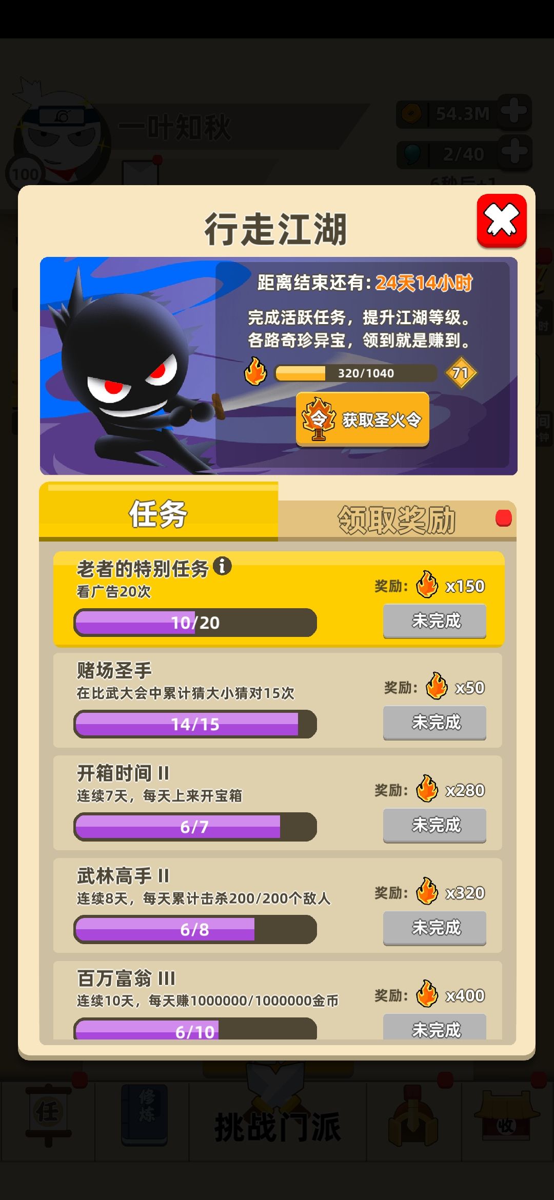 第二就是那些数额极大的任务,圣火令有30天,新来的大侠们不用着急,因为每天挂挂机就能够做完,武林大会400的任务不需要做,只需要做老者任务就行了,圣火令的奖励极其丰厚建议一定要做完,双倍卡如何使用我已经在第二期说了,想要知道的去糯米指南第二期。