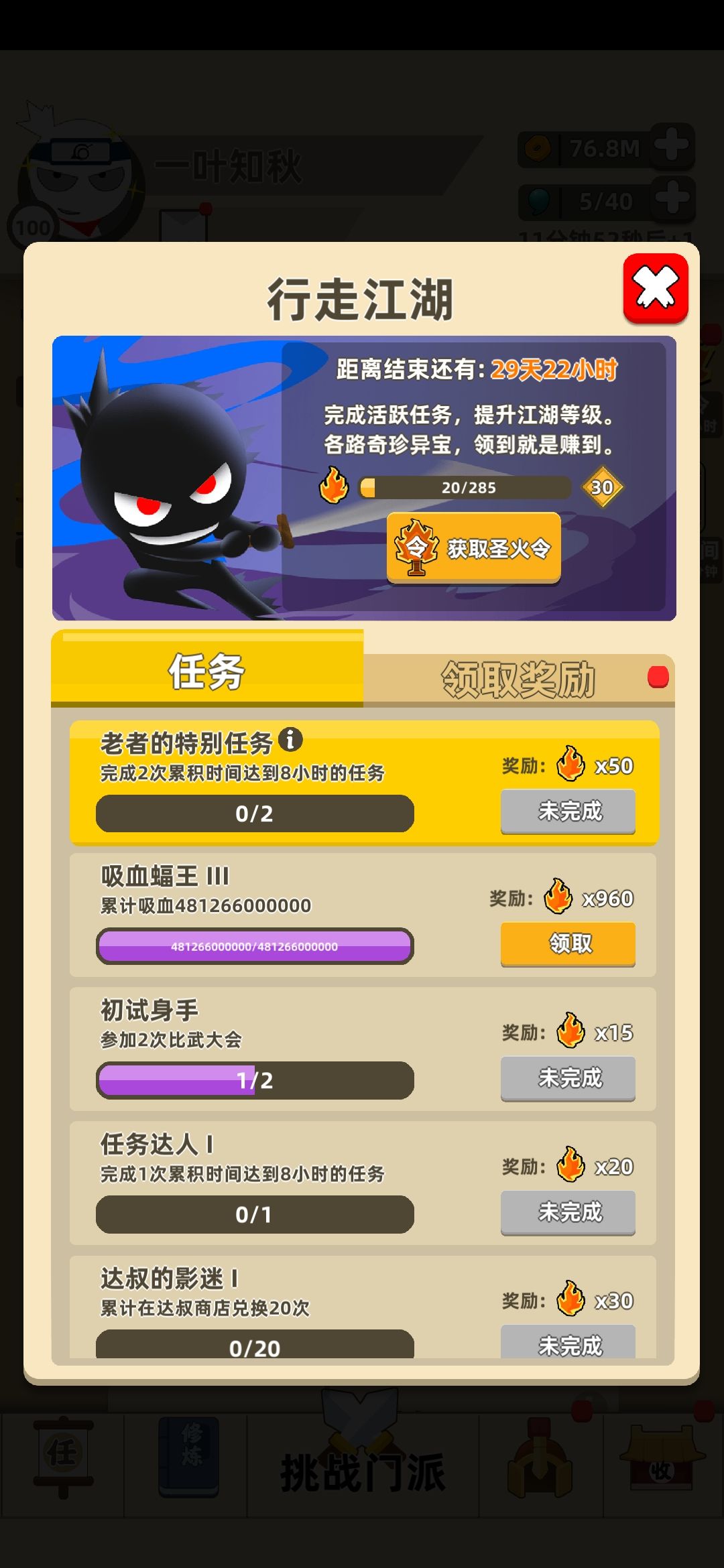 第二个就是刚开始老者任务出现的8小时任务,运气不好得等个8小时才能做。