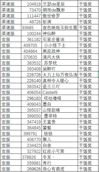 1、我们会在所有发帖的玩家中抽取5张贴子作为幸运玩家获奖帖,所有参与此次活动未中奖的玩家将获得干饭奖励。