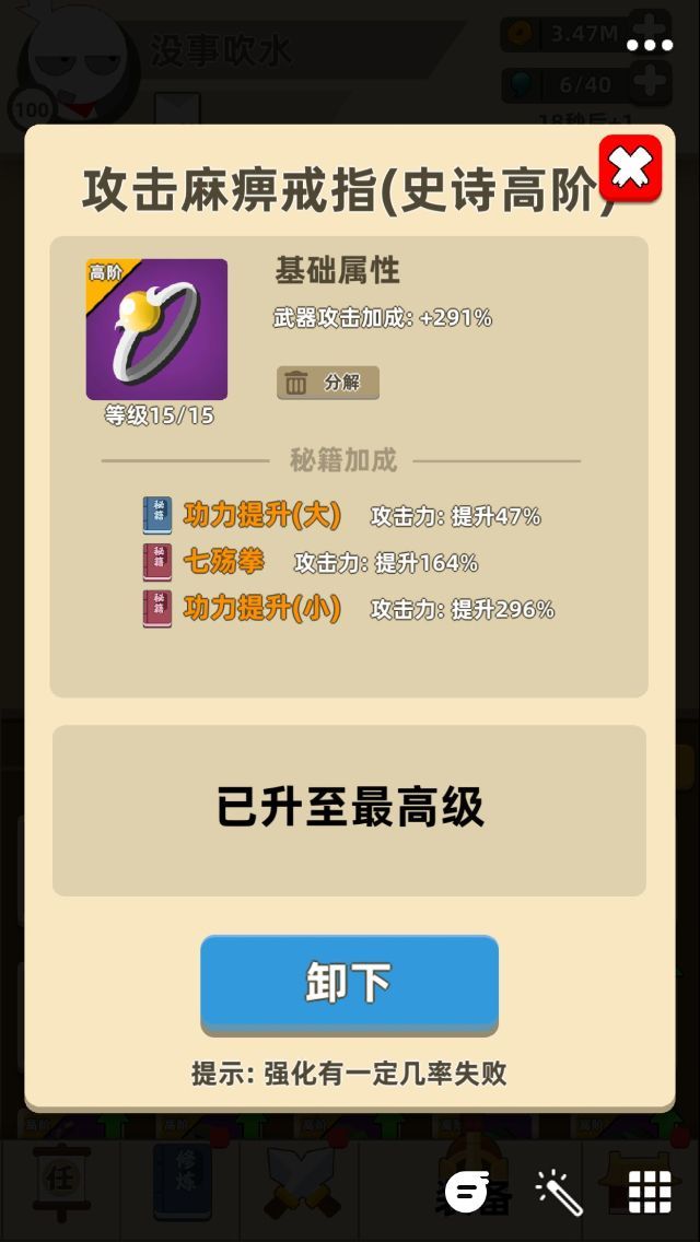 6)切记史诗及史诗以下的秘籍加成是不会高于史诗高阶的(大部分高于,个别秘籍除外),所以尽量选择史诗及史诗高级的好一些的饰品,因为他的上限是不同的。