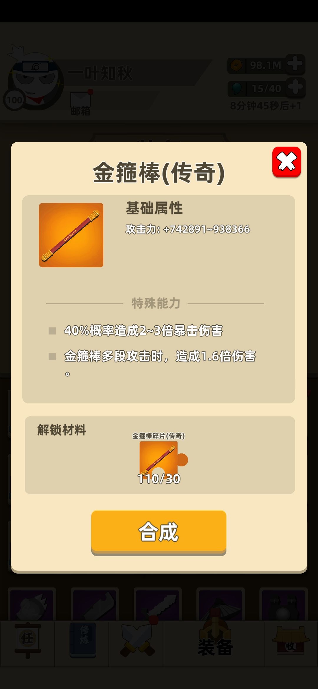 4)金箍棒,拥有非常稳定的暴击,输出最稳定的武器之一,手感非常舒适但是就上面的那些装备而言这个版本还是不太推荐,而且他的暴击与秘籍的暴击并不兼容导致了输出有所降低。我的建议是可以买荣誉的碎片,如果没有钱的话可以不用金币买他。建议搭配虎皮加头箍。(适合普通副本,大侠副本攻击碾压可以用用)