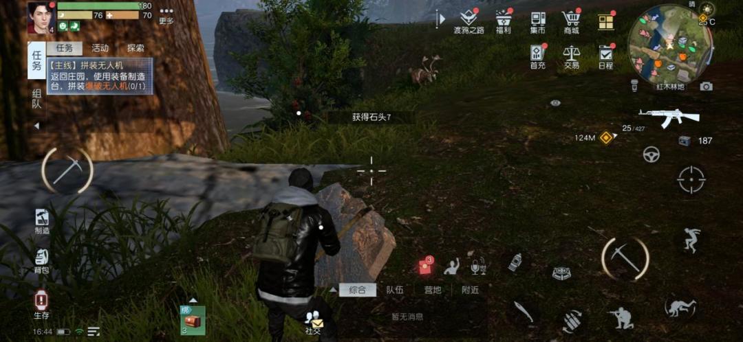 在靠近后,屏幕左右两侧(原本的开火按键)会自动变为“工具图标”。接着我们只需要按照图标指引,点击后就可以进行石头或者铁矿的采集了。值得注意的是,部分“稀有材料”是概率掉落的,不会100%出现哦!