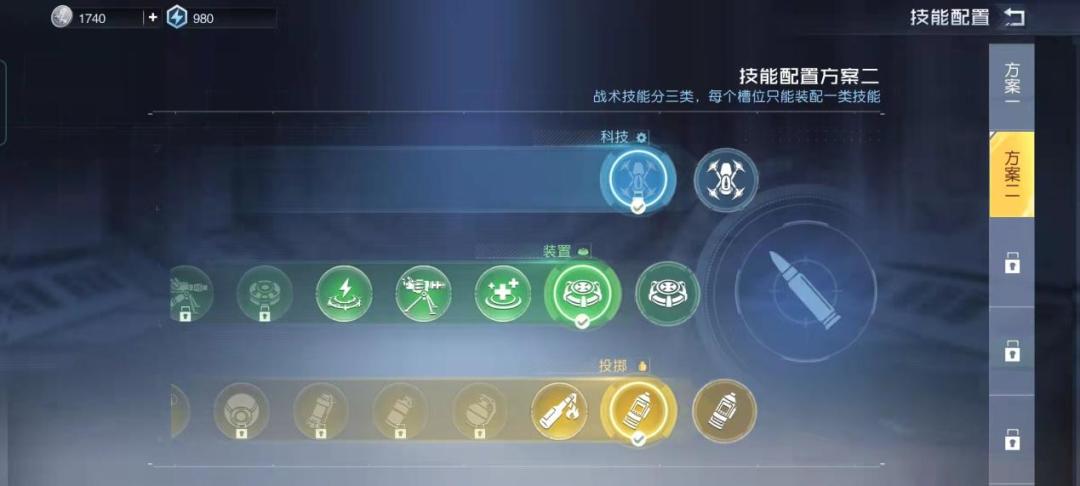 不过要注意的是,玩家只能同时佩戴一个投掷和一个装置技能,被动技能可以同时生效。解锁这些技能需要消耗银币和天赋点。天赋点可以通过参加日常活动或者通关据点来获得。