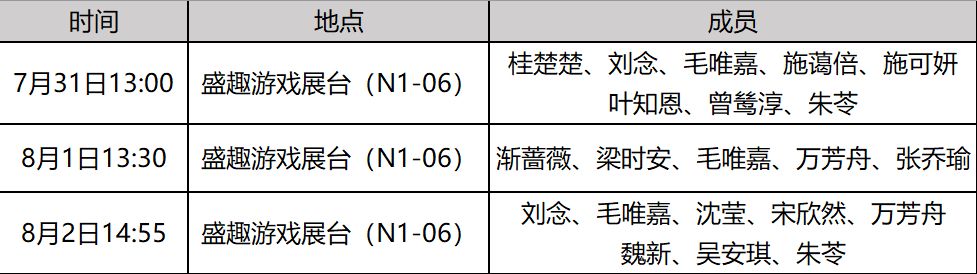到场的成员包括桂楚楚、刘念、毛唯嘉、施蔼倍、施可妍、叶知恩、曾鸶淳、朱苓、沈莹、宋欣然、万芳舟、魏新、吴安琪等~小姐姐们届时将会在现场和玩家们互动并演出!