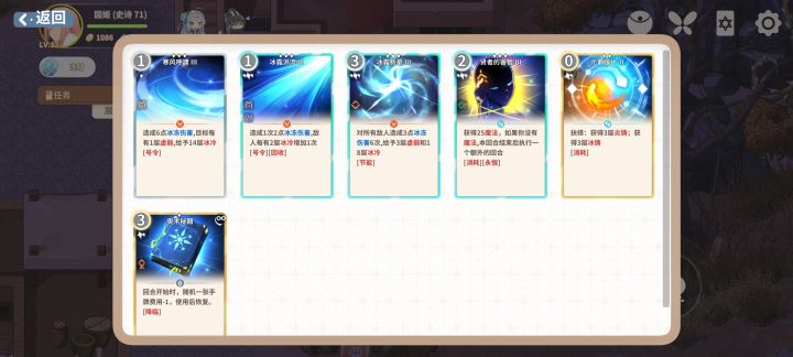 其中三张核心冰霜新星提供虚弱,寒风呼啸叠加冷冻,冰霜洪流提供核心单体伤害。