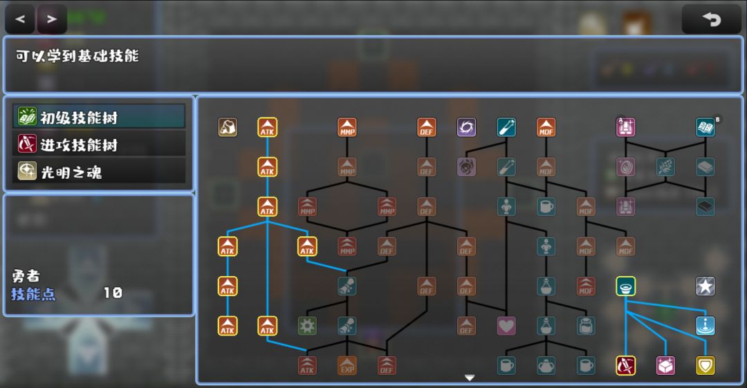 先在水晶处买攻击,把钱花光后,在技能树的“光明之魂”分类中,点出唯快不破,之后按照下图顺序给攻击技能树加点: