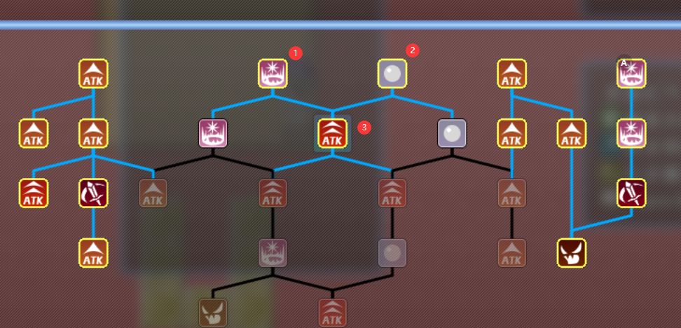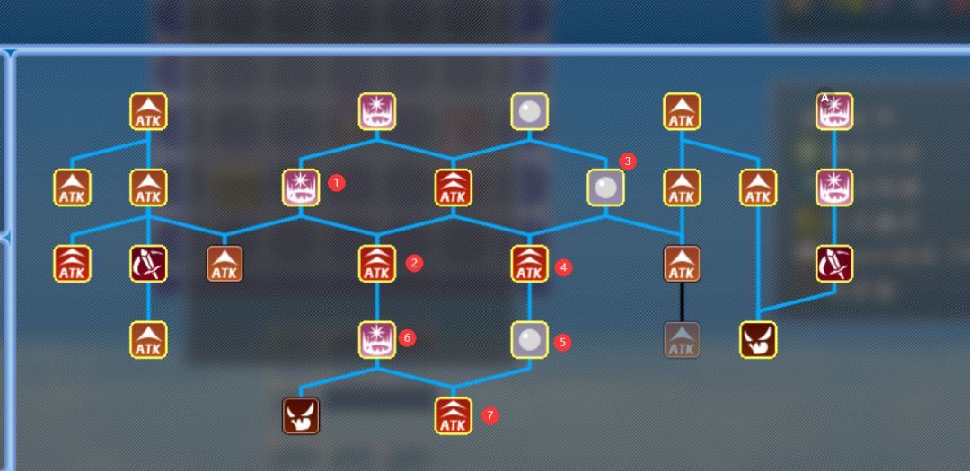 在买完攻击力后,给进攻技能树加点,顺序如图