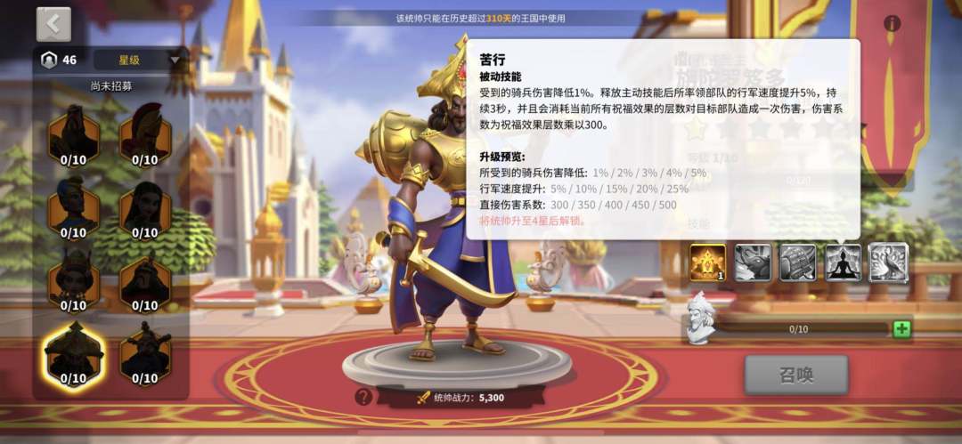 技能效果也包括了降低受到的骑兵伤害,这在对抗铁木真反集结,甚至旃陀羅笈多本身的反集结,都将起到非常好的针对效果!野战时释放技能后额外行军速度加成也是相当不错,既能够紧紧追上敌方的部队,亦也能轻松的抽身,对于很擅长干些偷鸡摸狗之事的单位来说是不可或缺的!