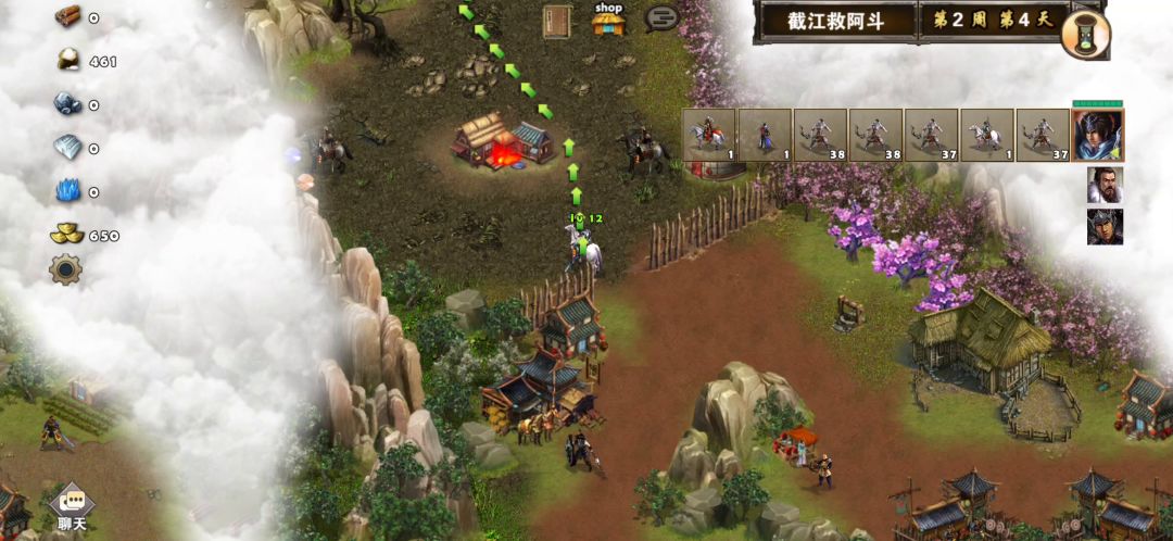 打法思路:我们救完糜夫人以后在把射手营射手全部带走升级为鹰卫先调好站位,这里贾诩的运气换成寒风马或者月光马目的是不让张郃的单位冲过来然后过一天准备打张郃,战斗开始刷一个我方战损较小的开局(张郃最好打英雄少打小兵)然后等张郃方行动完太史慈开大贴着张郃防御后动,赵云后动,贾诩用复制技能加狂热给太史慈加伤害,剩下就是鹰卫配合太史慈秒掉张郃清空小兵。(这里我打急了应该把敌方鹰卫留着让贾诩对着空地放技能给我方鹰卫恢复战损的)