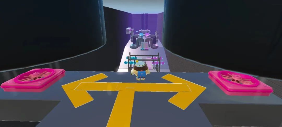 下面来到齿轮障碍,正常躲避障碍就行。之后有又是有三条路,中间就像个滚筒洗衣机,两边一边是转轮,一边是大风扇。我建议是走转轮稳一点,走滚筒里面晕得很。
