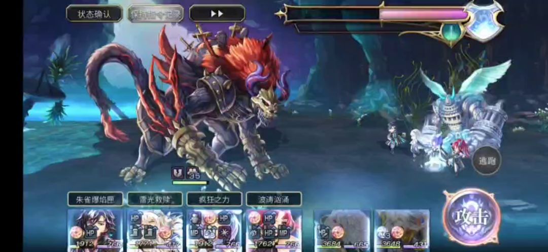 带军师打混沌巨魔是核心。这个BOSS估计是全耐性的,所以带军师(弱耐转换)和高连击的角色比较好打。高连击的角色主要是有雷属性角色(疯狂之力带电加连击),晶属性角色复写+烈焰猛打灵晶(10连击),有了他们便可以击破隐王锁血后的20层护盾。