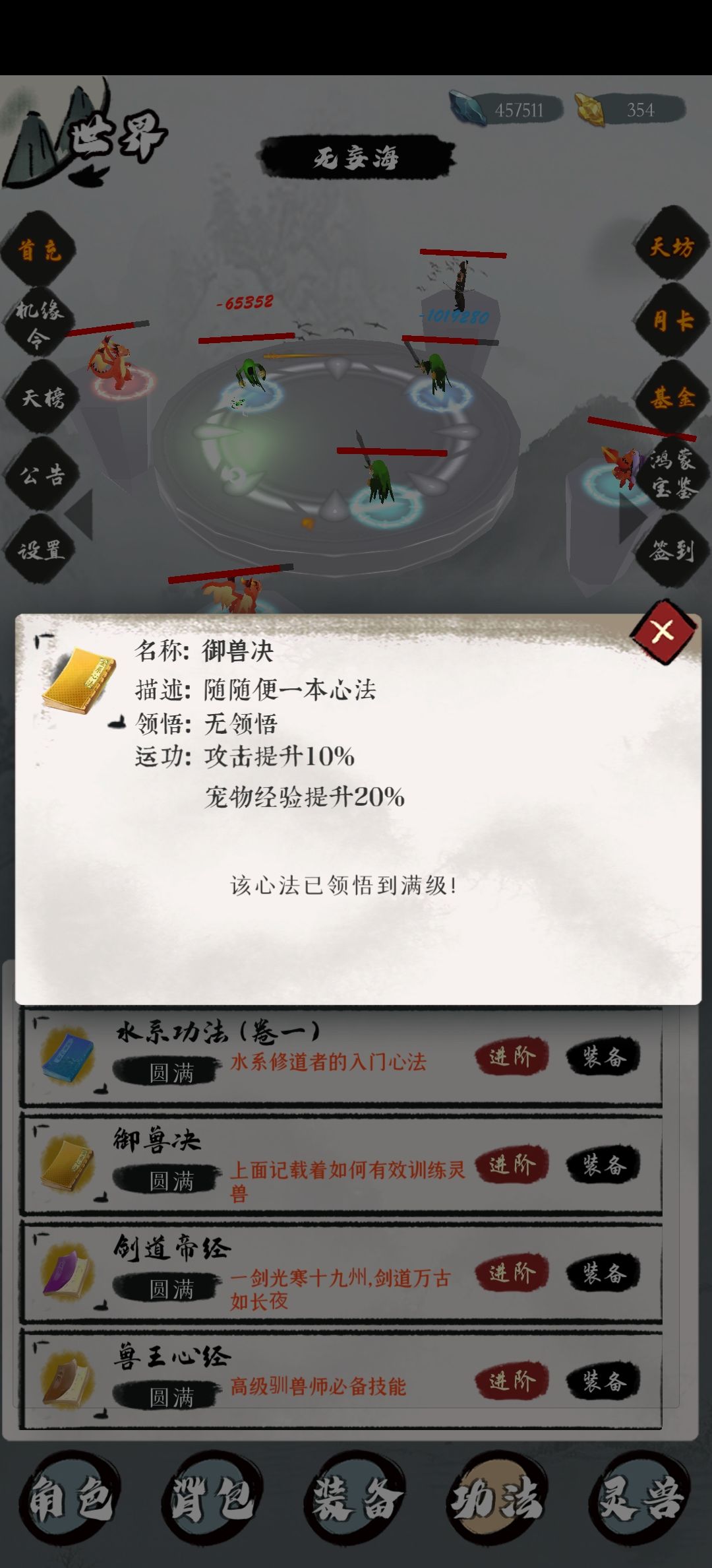 1.宠物可以通过激活对应属性的聚灵阵,带御兽(真)决,带马良笔(法宝)加快升级