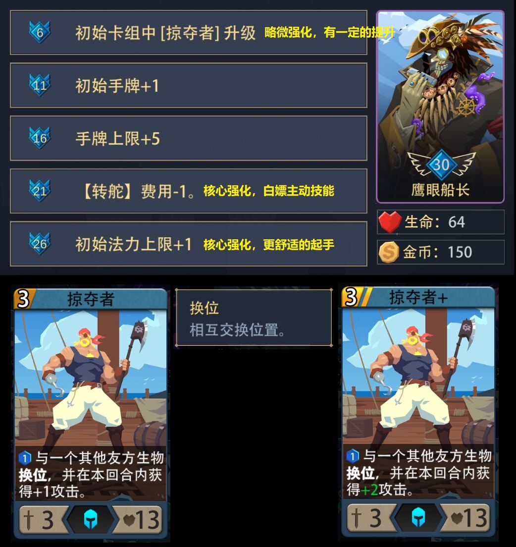 ——见习舵手由于生物池庞大,比较难抽到。因此可以拿初始卡组中的掠夺者来暂时顶替,有缘遇到就换掉,骑驴找马是也
