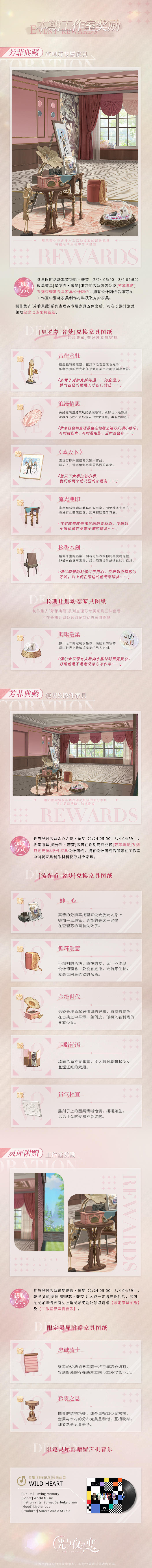 工作室家具[芳菲典藏]系列登场,后续将通过[羁梦镜影][绘心之镜]等系列活动【分批陆续投放】。参与本期限时活动可获得: