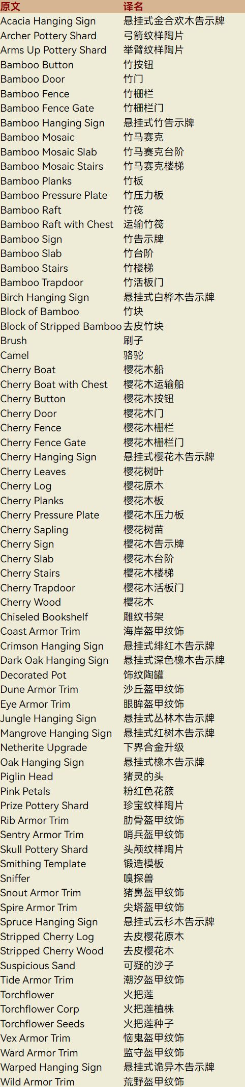 Minecraft Java版1.20快照23w07a新内容的简体中文译名在本帖公示。