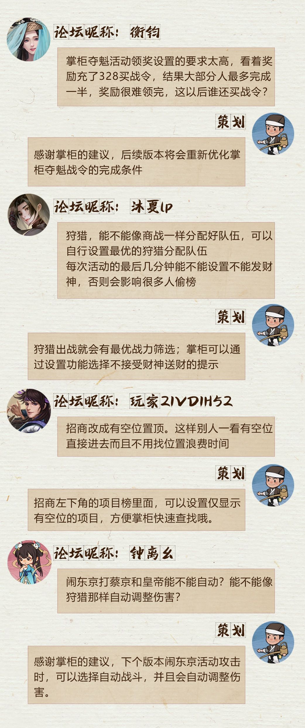 参与每月意见收集活动,即有可能收到策划回复噢!