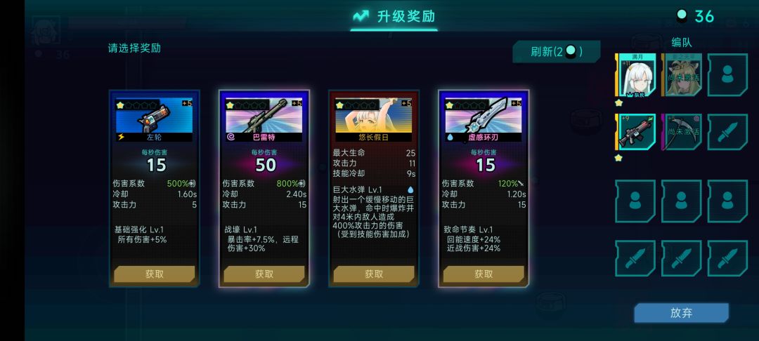 4.不知道不同品质刷新概率是怎么样的,有时候一下子出现好几个彩色