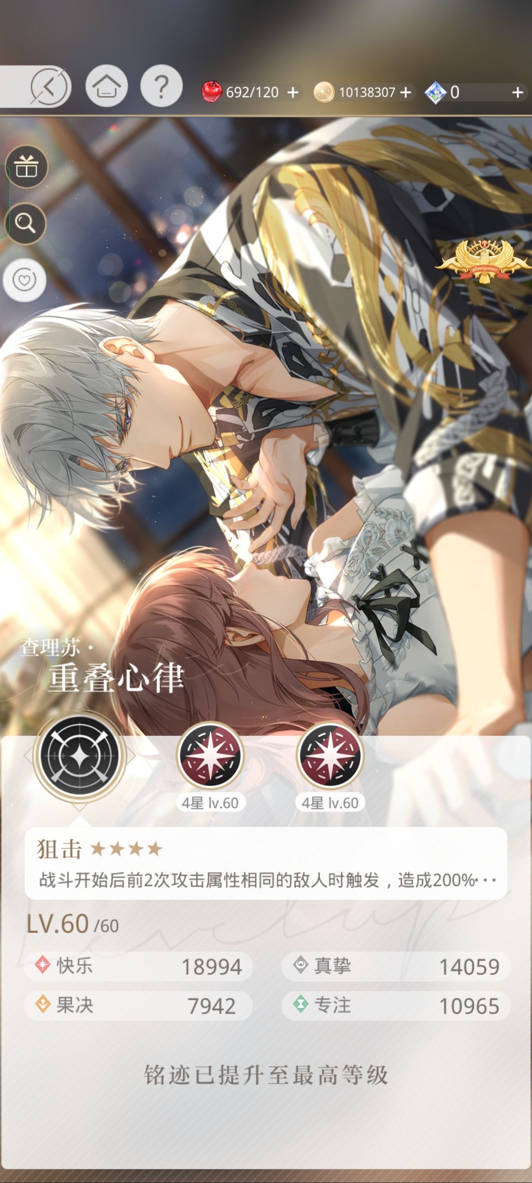 齐司礼:咫尺(这个铭迹我也没拉满,但他就已经有两个数值到一万多,可见伤害还是非常高的)