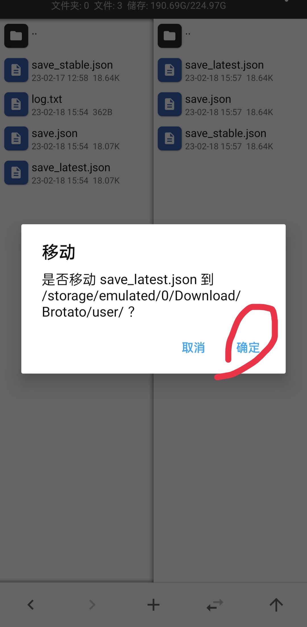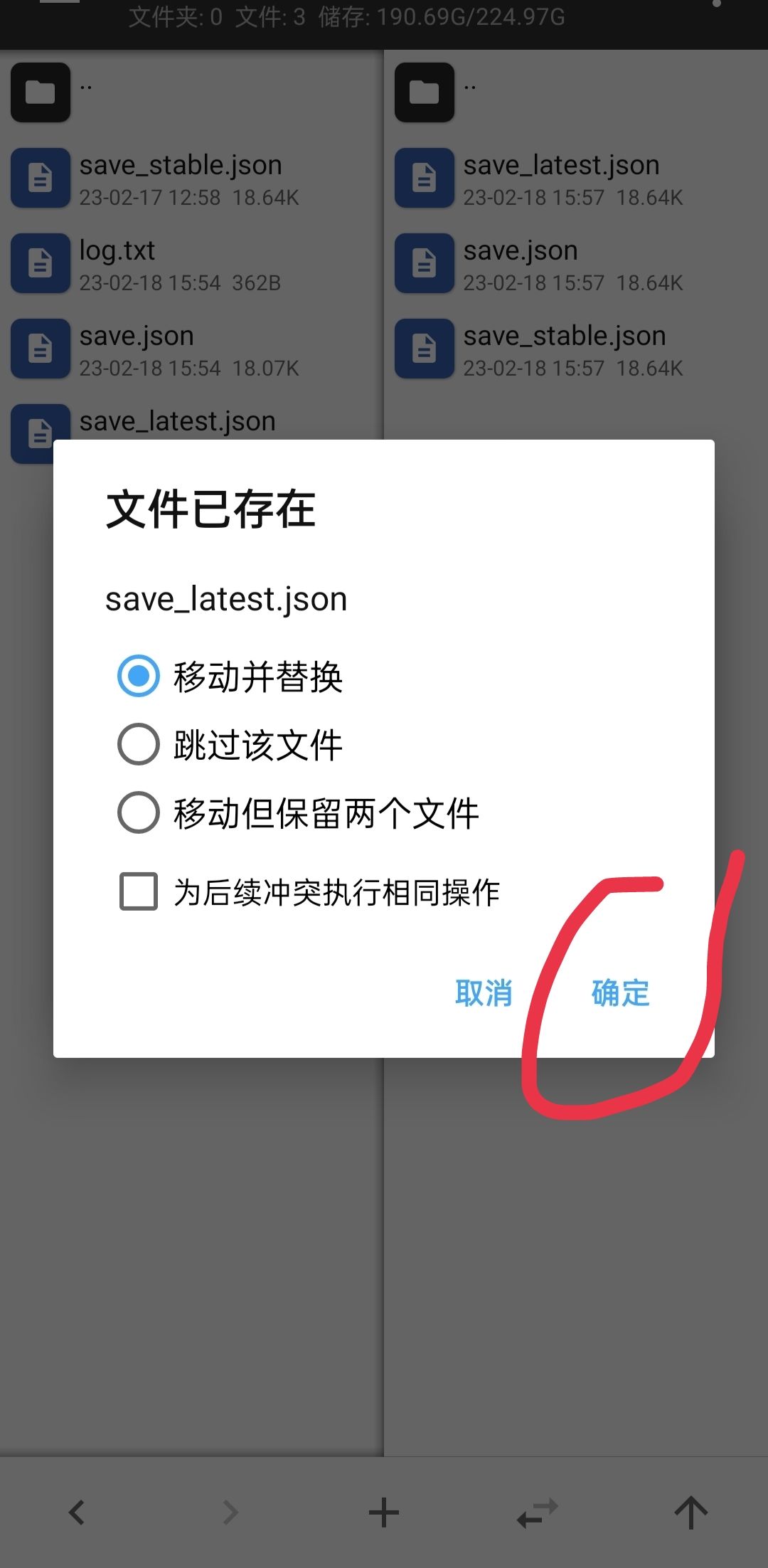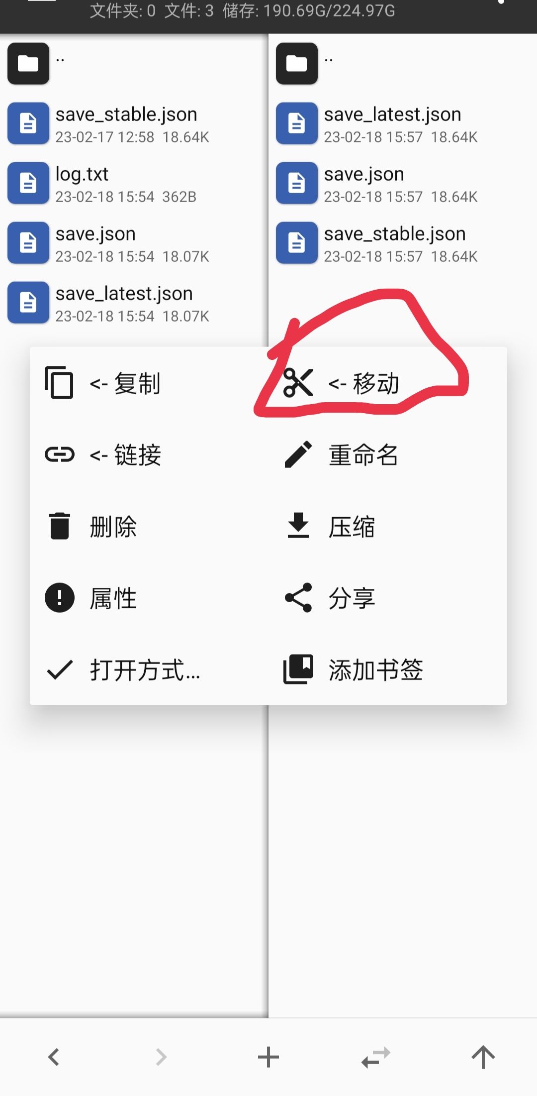 注意:如果左边只有log.txt文件无所谓,长按右边的文件移动就行