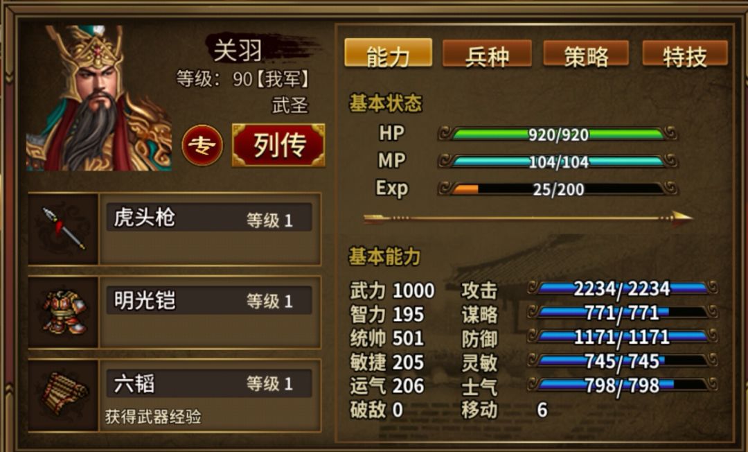 7、六韬10个(周目4个+功勋换6个)、好评之书1个,重要,刷一局共可多640武器经验。若武器稍差一点就可满的,改带三韬练甲。