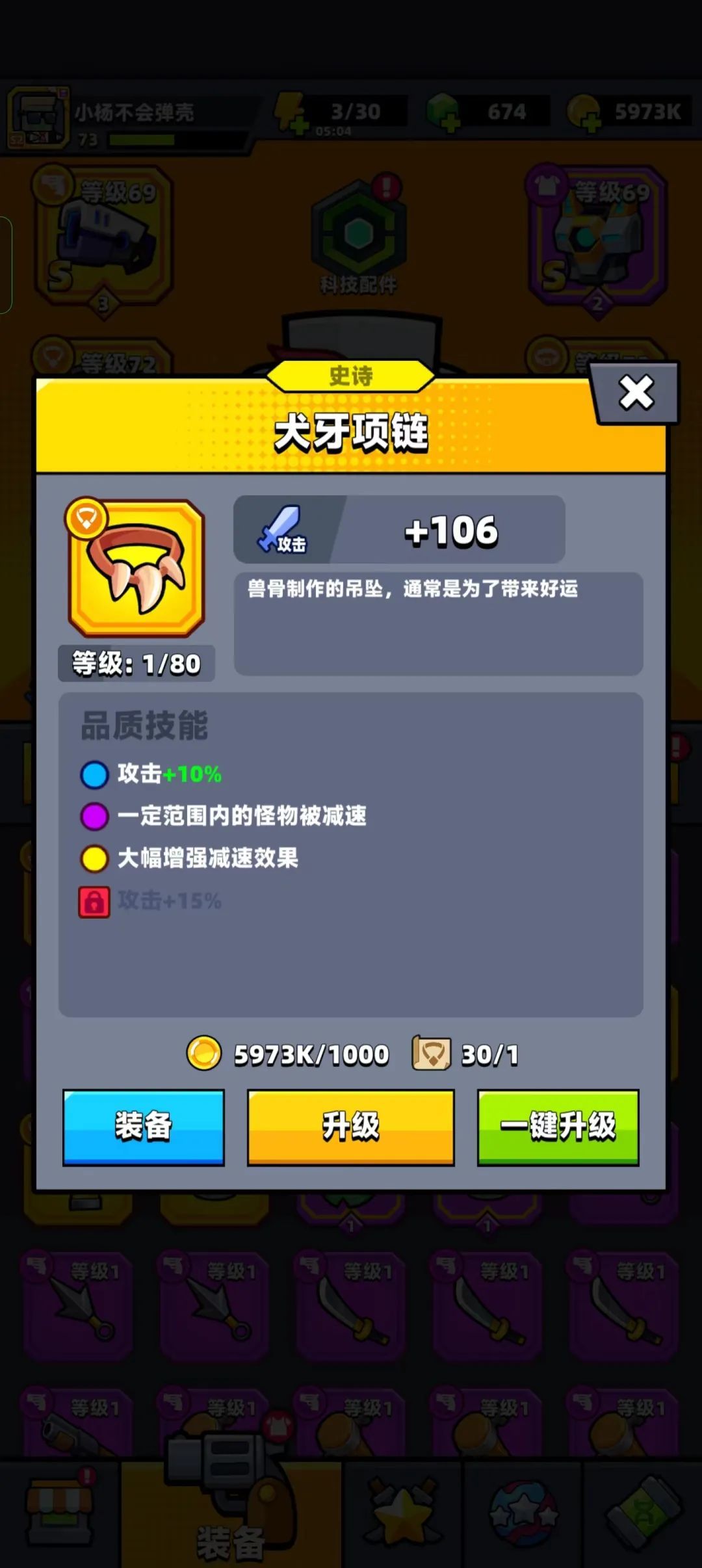 首先就是装备方面,我们只需要带一个犬牙项链便可以了,这时候很多小伙伴们不知道为什么一个装备就能有那么大的作用,小编从装备品质技能介绍下这个装备,小伙伴们就知道了。