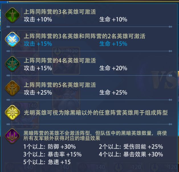 而每个阵营都有很强力的英雄,并不是说一定就要死磕某个阵容。几个相同的阵容搭配在一起,胜过五个不同的阵容,关于这点,我们来看看关于阵容的羁绊定义: