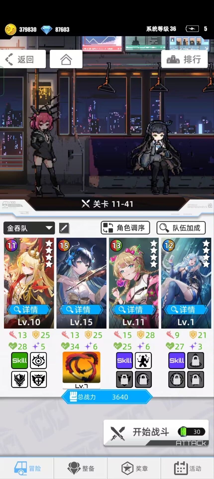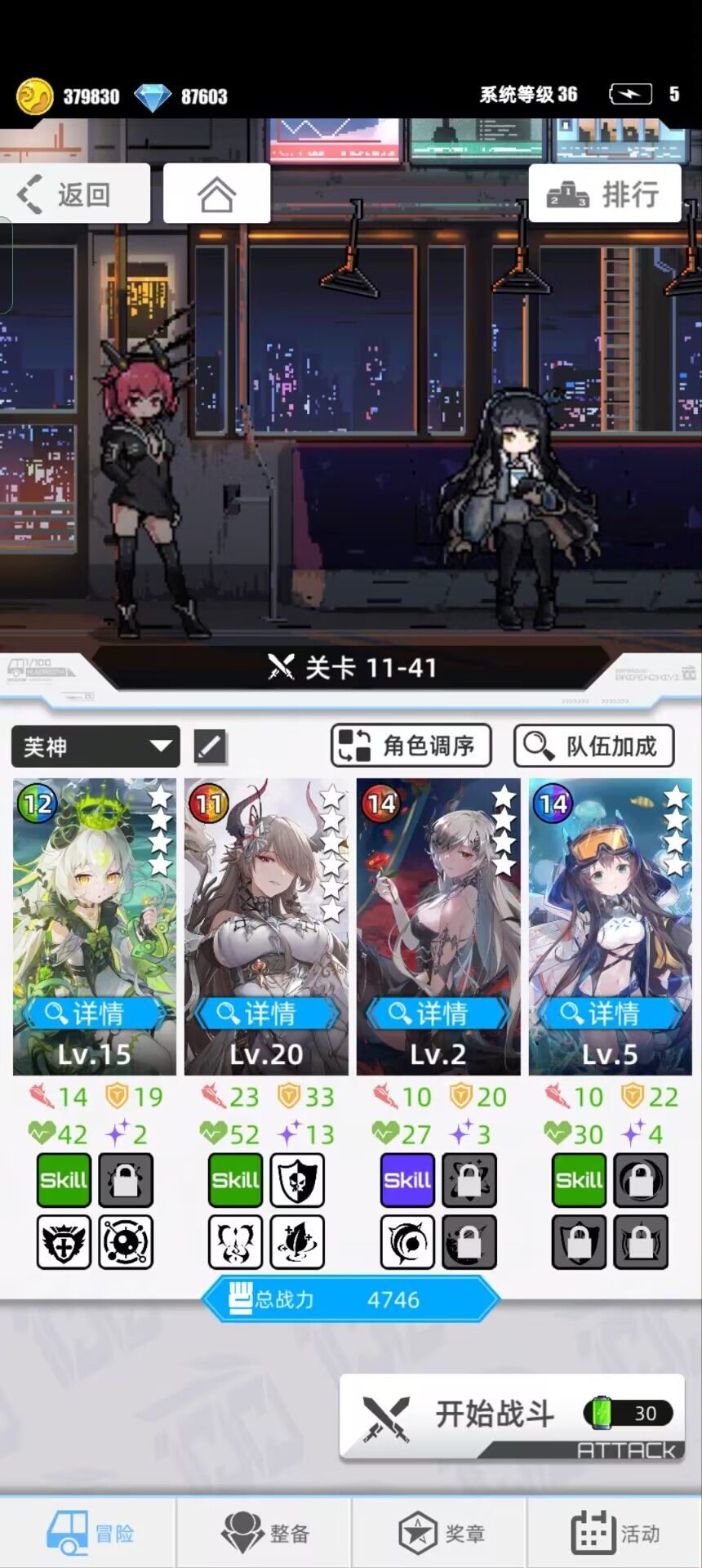 中高层(31~50) 建议求稳礼包可以买至护盾 配队可采用芙队和菜刀以及恐吞队