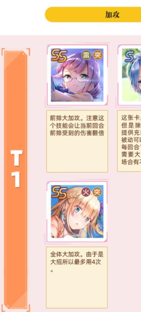 原皮圣华和泳装妹都有双强辅技加一个属性突技,前期补输出也很舒服,至于哪个更舒服嘛?个人顶泳装妹,毕竟清清凉凉很重要😊但是泳装妹只能用四次,原皮圣华可以一直用,但,她不好看