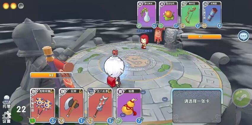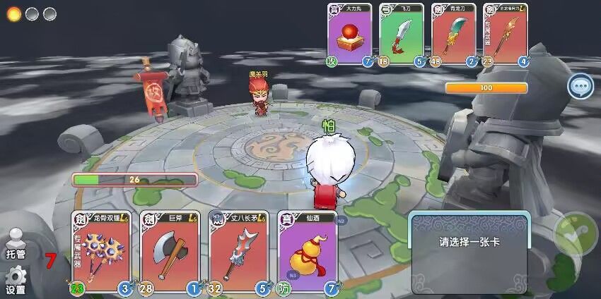 。然后真张飞决斗也是这情况,但丈八一下打不死,那就只能用掉酒了。再次防守成功,于是开档成功。虽然意义不大但是挺好玩的,通过计算只用自己一个决斗和仙酒玩弄对面俩决斗加俩宝物,还抢走一块地。再接下来打的话,(只谈都还是初始的时候,实际一局也都是初始的武器很正常),残血那就进兵营打真关,半血(31—50)就打真张飞;都能打的赢。