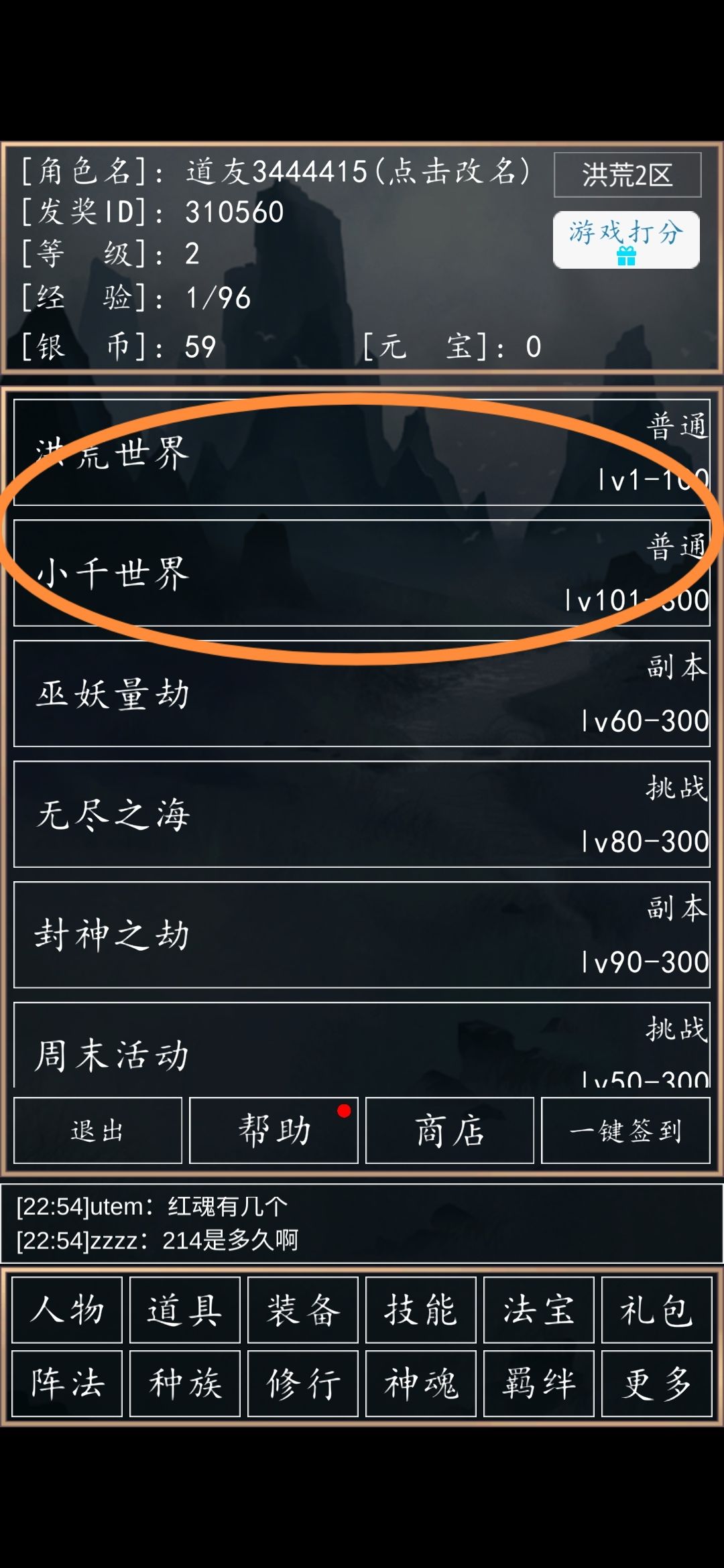 洪荒世界与小千世界是普通副本,产出装备,装备也是提升最大的,首杀一个图可以签到(签到每日重置)