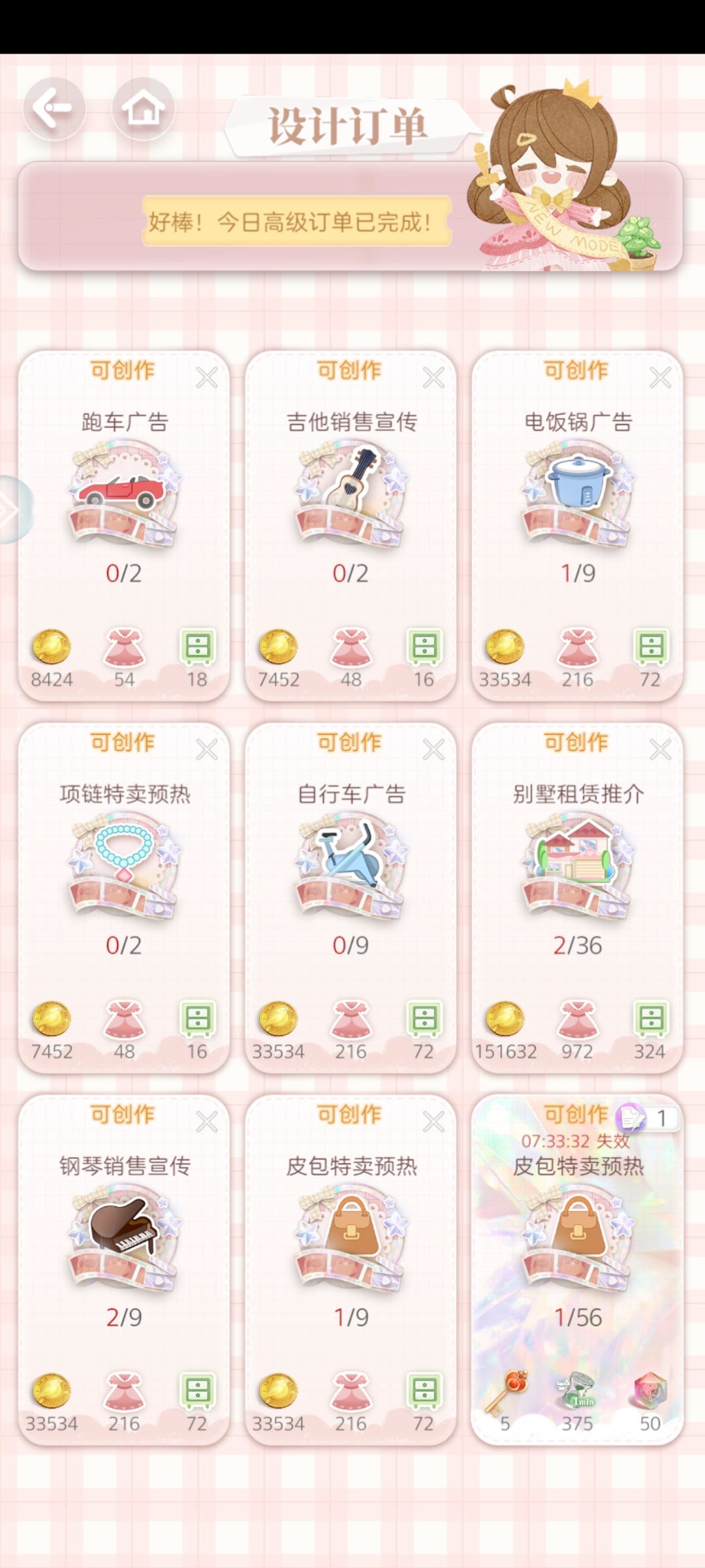 完成一次高级日刊,可以去商城换1-4个家具