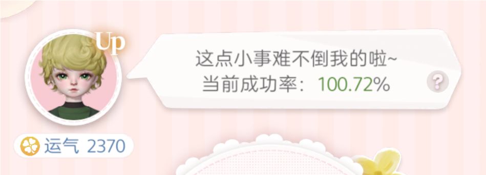 达到100%的参考:小偶亲密度21级+满值幸运度+up