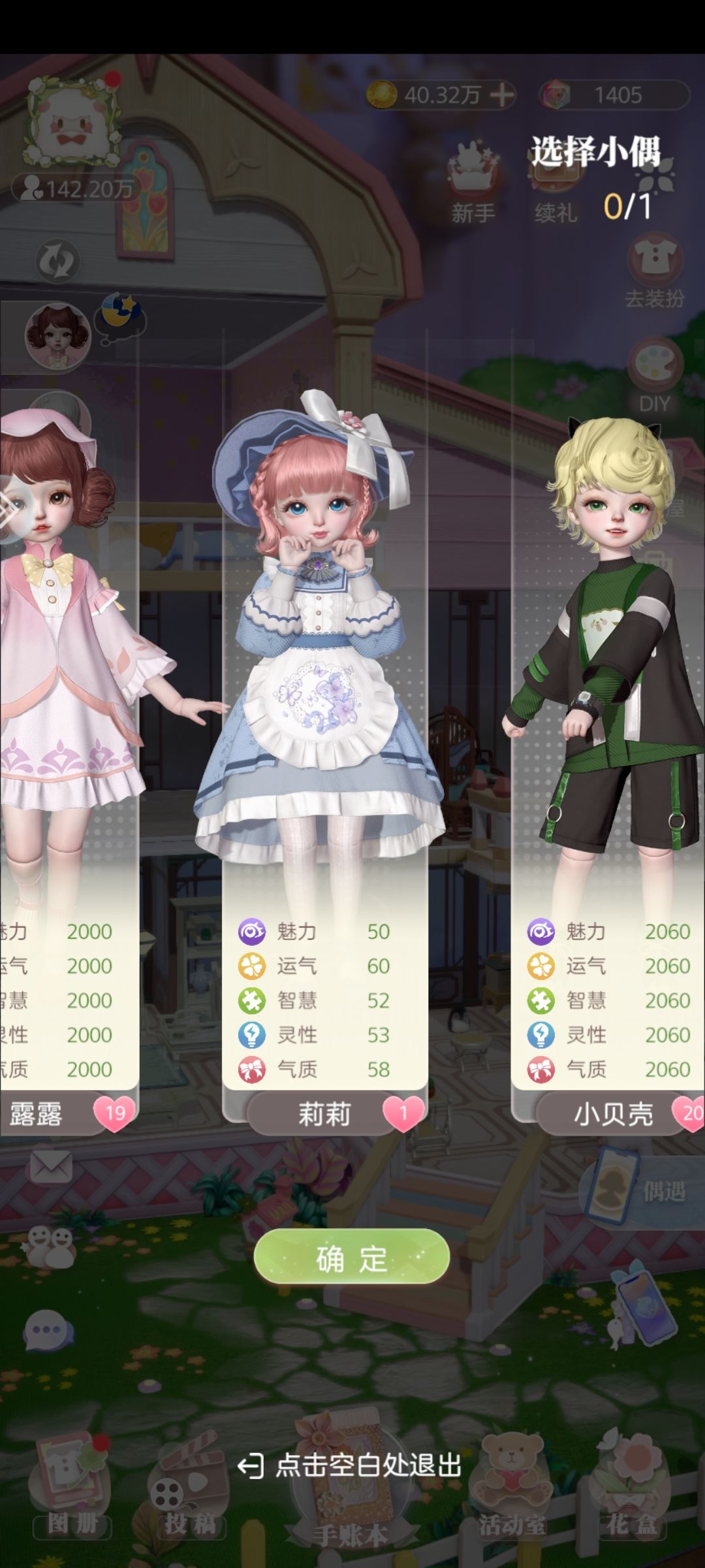 小偶可以先专精,单独把资源叠给一个小偶(礼物有四种,可以送四个小偶)因为前期我们并不用考虑up问题,有一个能在前头顶着用就行,到后面那个小偶属性值溢出了,我们就可以把剩下的资源分给其他小偶
