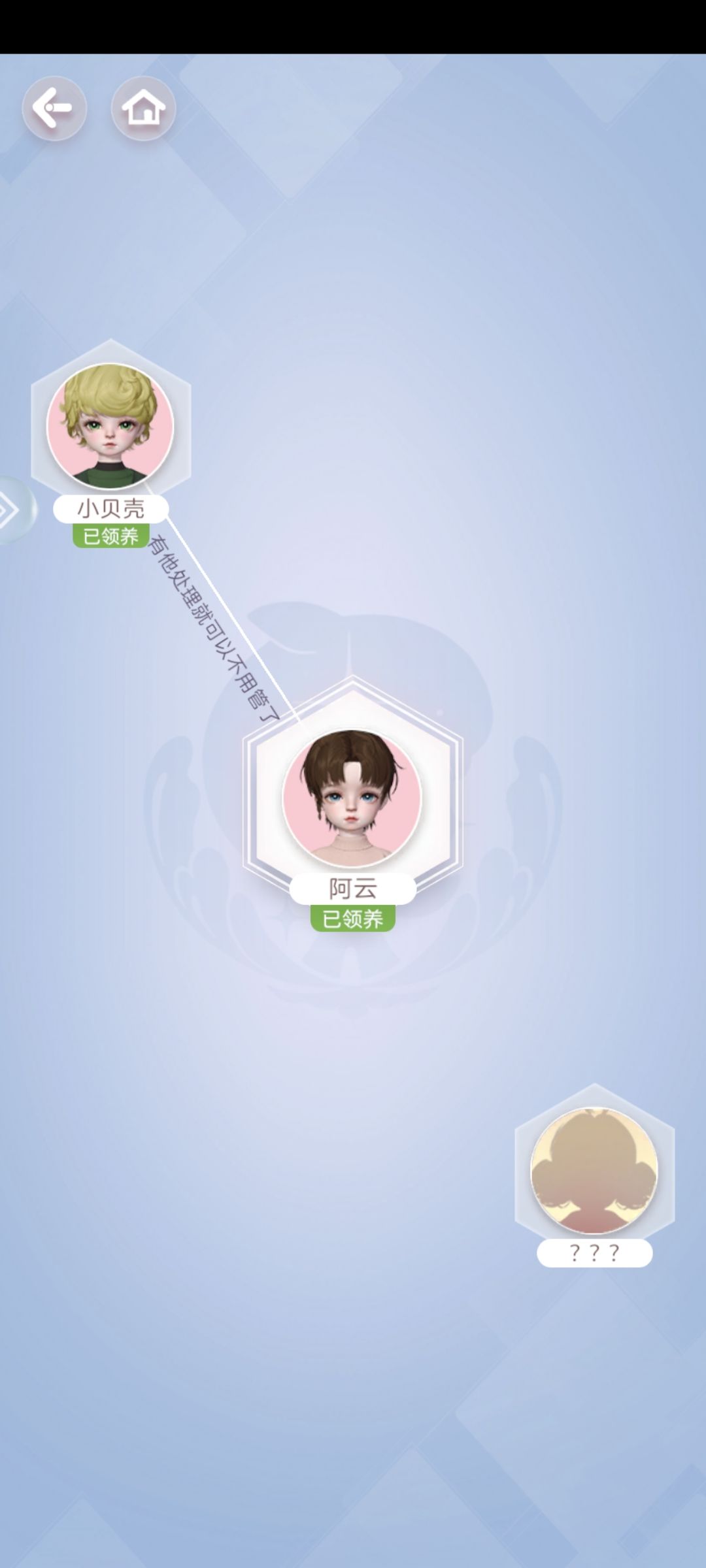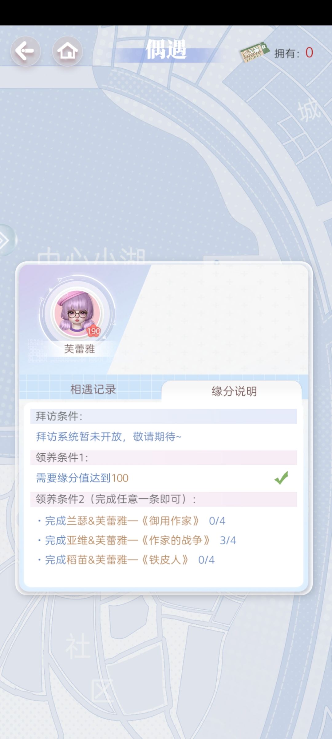 拜访建议选一个小偶寻访,然后一直选ta寻访,直到他的关系图全领养,目前不知道有没有保底这一说