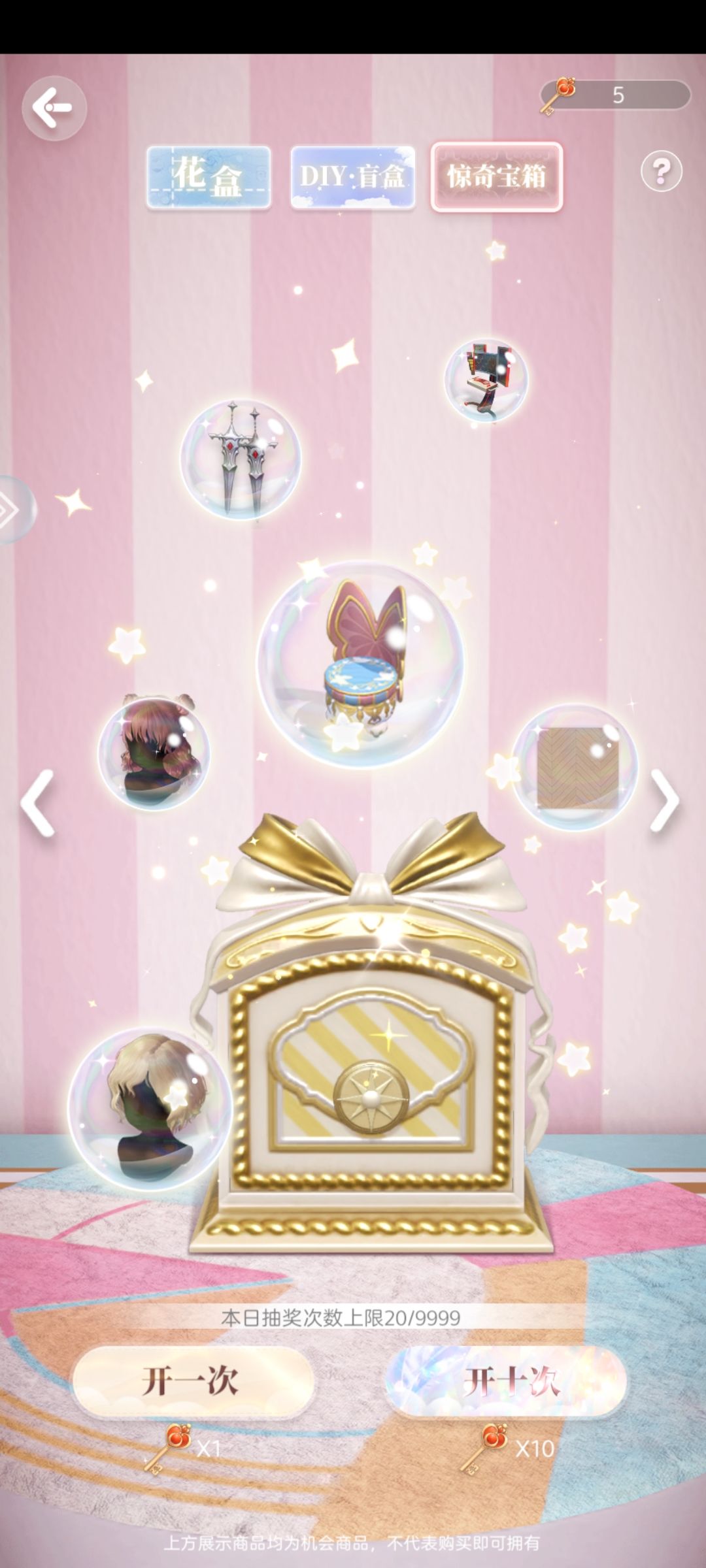 这个盒子前期可以不抽,为了完成手帐任务可以抽一抽,它的属性加的没有服装和家具多,而且前期还是比较金币吃紧的,等到投稿区都满级后,金币会多出来好多,到时候可以随便抽