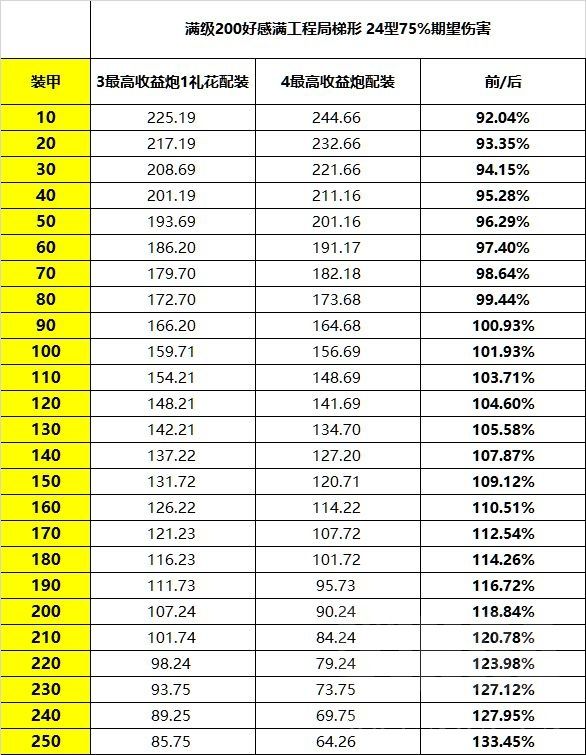 直接上伤害期望计算,90甲即超4炮,攻坚中只有打低甲要塞时才会考虑4炮配装