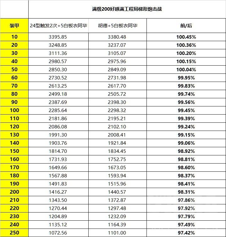 顶配装备下的24型,不考虑技能第二段,常态下也是输出和VV差不多,防御身板比VV强的首轮炮击无视战损船,32血27甲的差距虽然不如圣盾防御,但是抗压能力还是远超大部分船