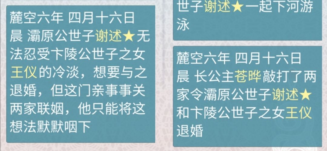 *偷|情事件后面如果没有当事人后悔一事,大概率是被设计陷害,谋略高于主谋(通常是两个当事人中一方的仇人)可在主谋方的履历看到下了药事件;骑马受伤事件也可能是马匹被动手脚,同样可以在主谋履历里看到。