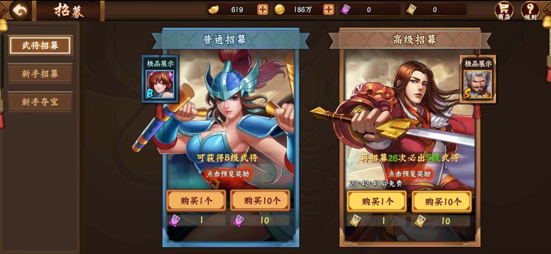 高级招募池没必要刻意用元宝刷,它会随机出S将,比较一般,而且会重复出(重复的就很坑,会变成50升星卡,重复就是血亏)