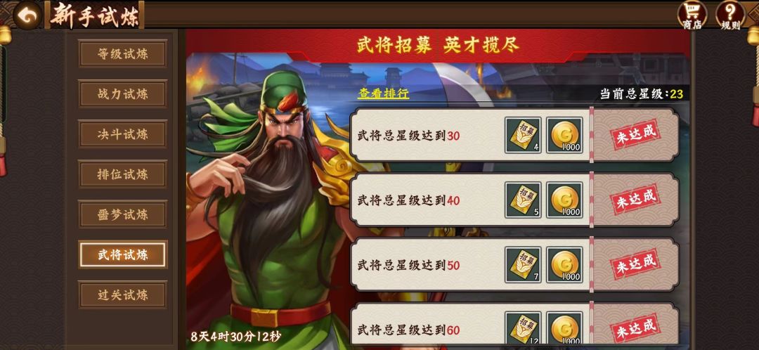 (武将几个比较关键的强化节点。2星,4星,一冠,三冠)