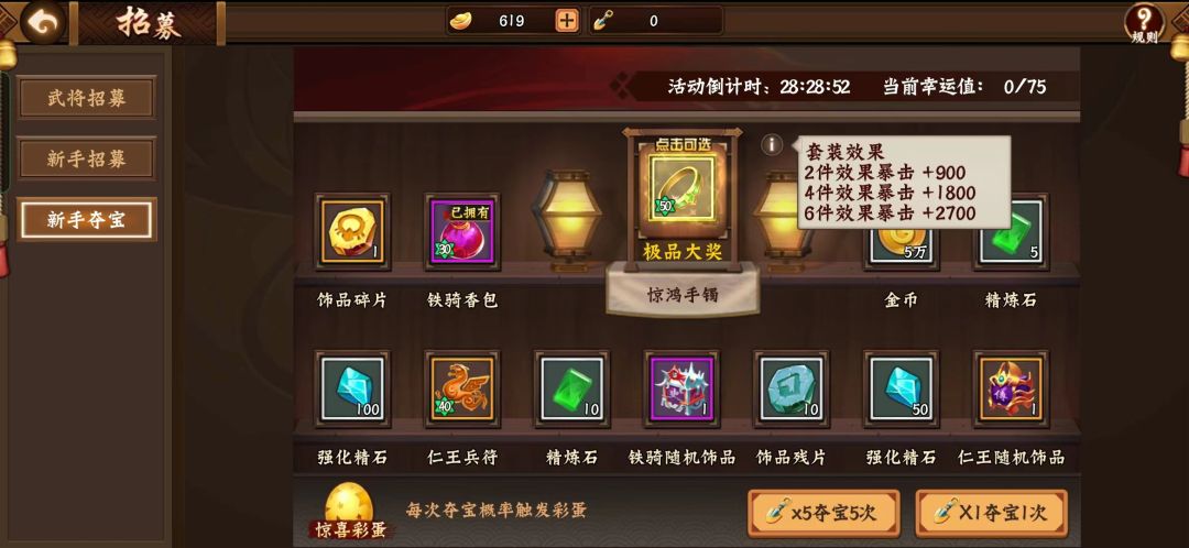 饰品3750一轮,建议低氪抽,而且抽满四轮。能够你用到100级左右。首发648+充值返赠能拿1W+元宝。足够