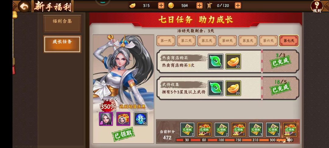 4. 元宝不要乱花,好钢要用在刀刃上!打折英雄令可以屯。三百¥左右一年三四百万战吧,本人小氪新号三个月300w
