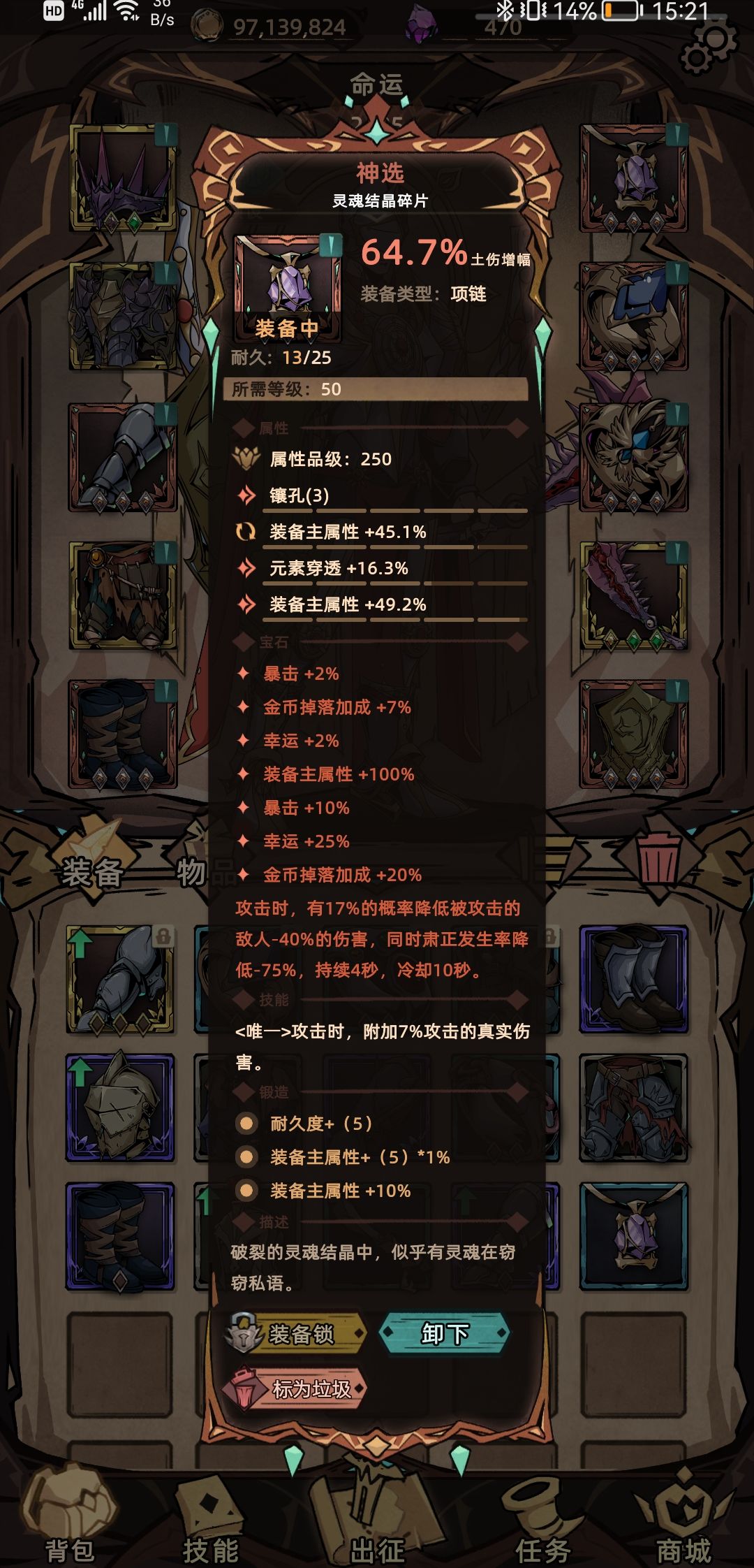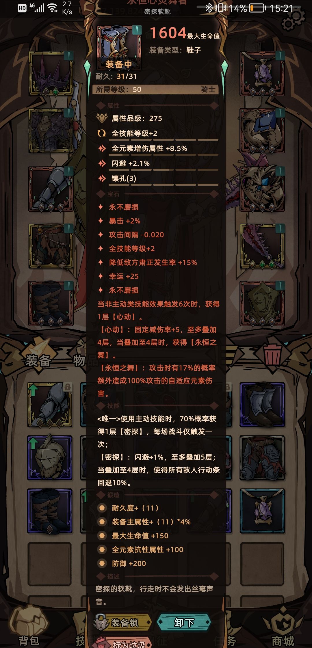 3. 没啥用系列:打造装备上的幸运,攻击,防御以及其他躲闪之类的乱七八糟属性(提升太低,无伤大雅)