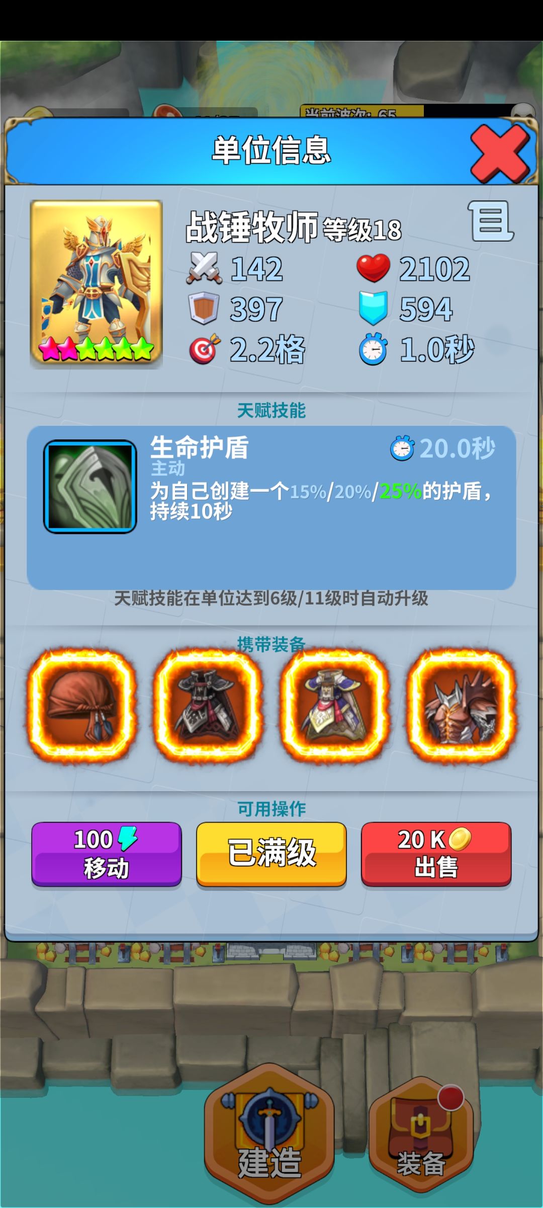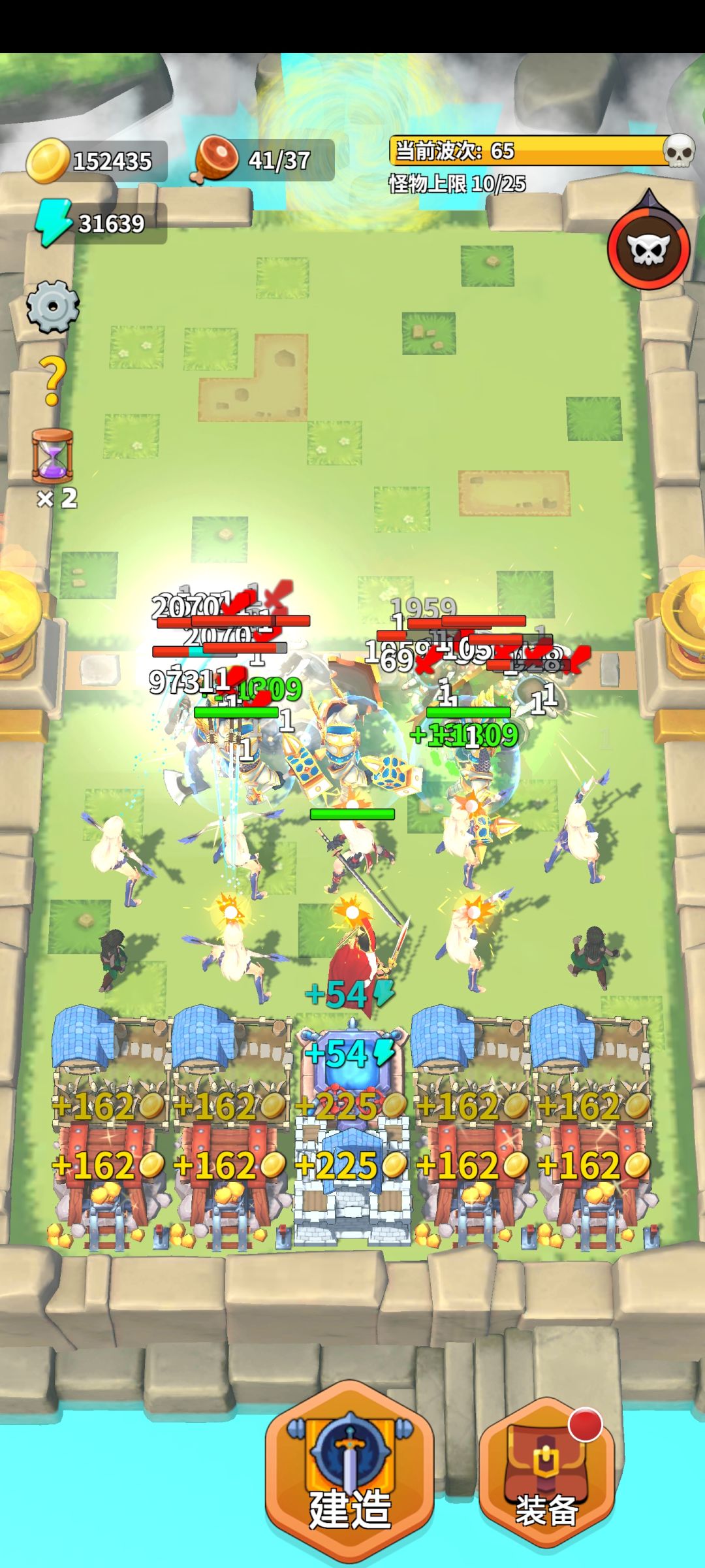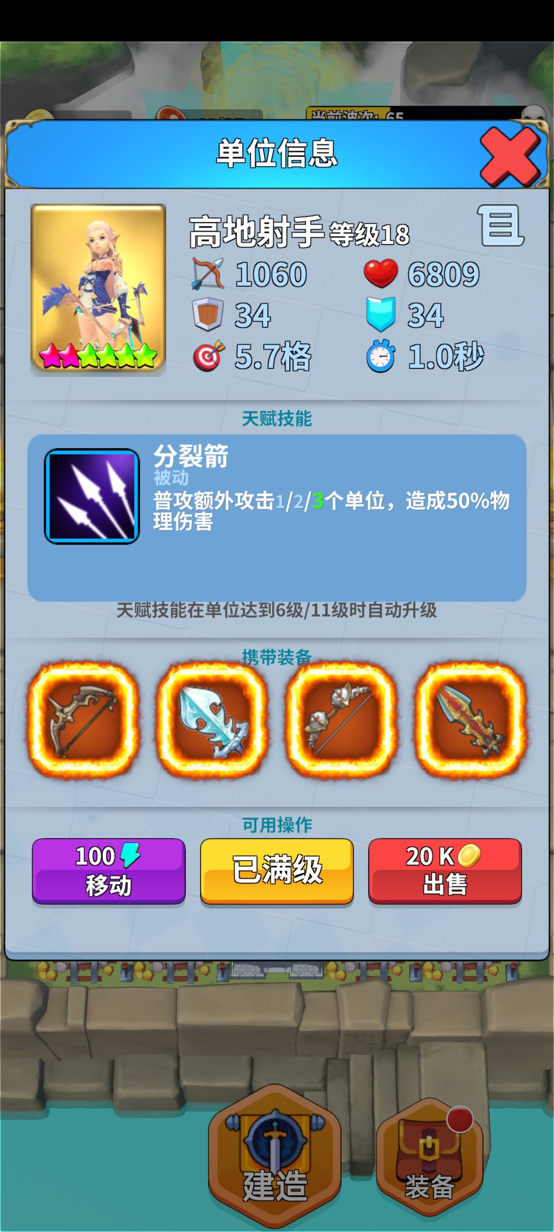 这版本我觉得橙弓yyds,前期多造金矿攒资源,两个橙弓,一个前排,一个奶妈,足够了。后期装备买齐,轻轻松松60多关……