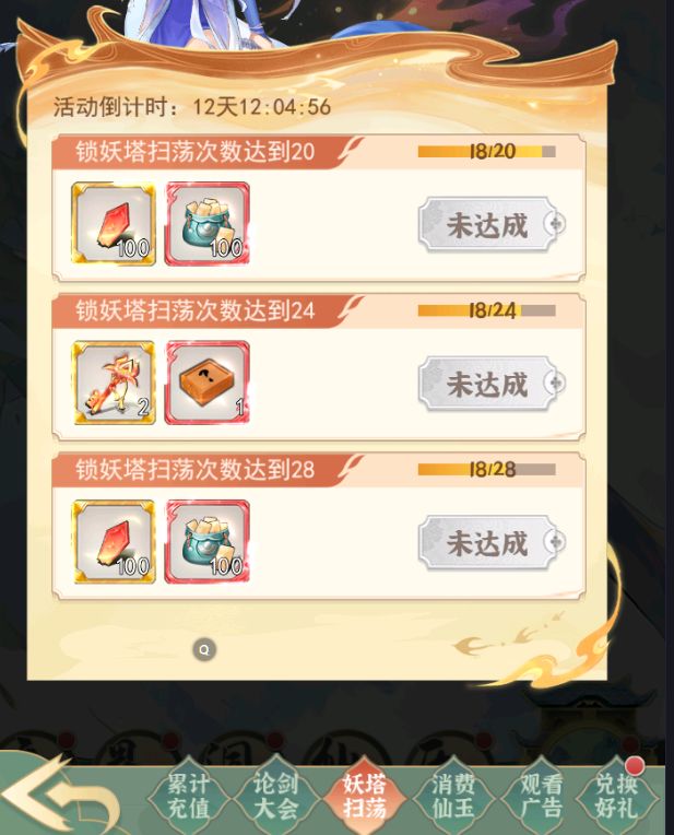 每日日常之外还需要干的日常就是锁妖塔扫荡五次。
