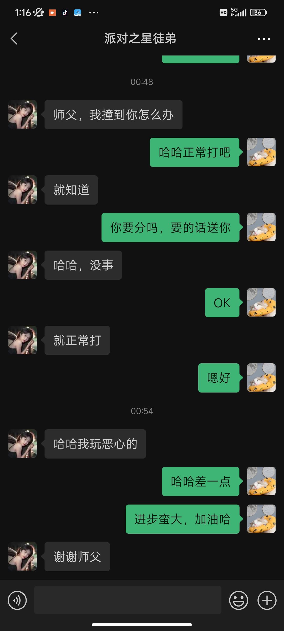 还记得在大厅里你加我说想找我做师傅,我不以为然,因为觉得自己只会一个英雄根本没资格当什么师傅,你却不依不饶,找我对战练习。你说“我真的好喜欢这个游戏”,说了好几次,我被你真诚打动,但想想自己的水平也不知道教些什么给你,只能把自己几年前学任斗的基本功视频找给你,没想到短短数日,进步神速,其实你背地里友谊赛中,也跟从各路高手的对练中,成长了起来。