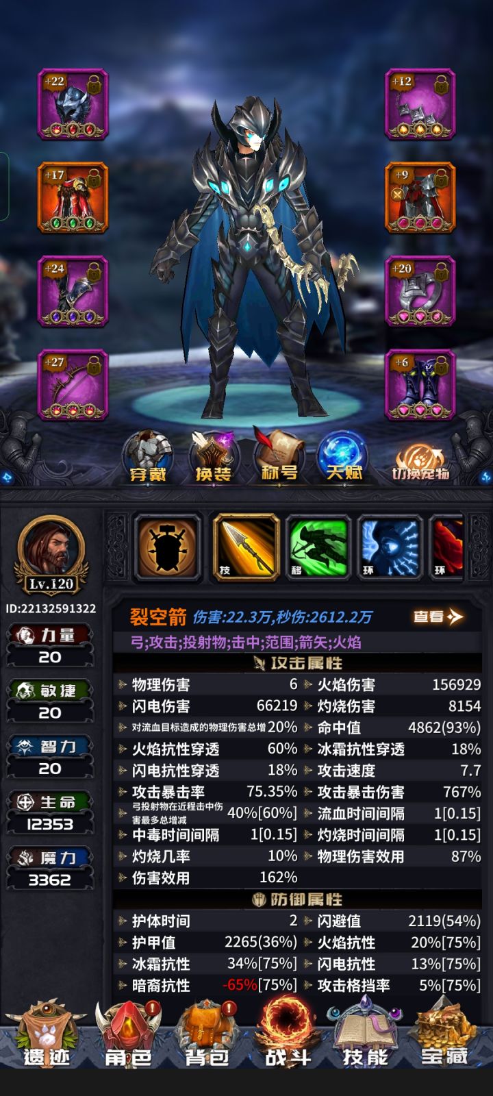交作业了 角色120级 50技能裂空已过无尽焦土180